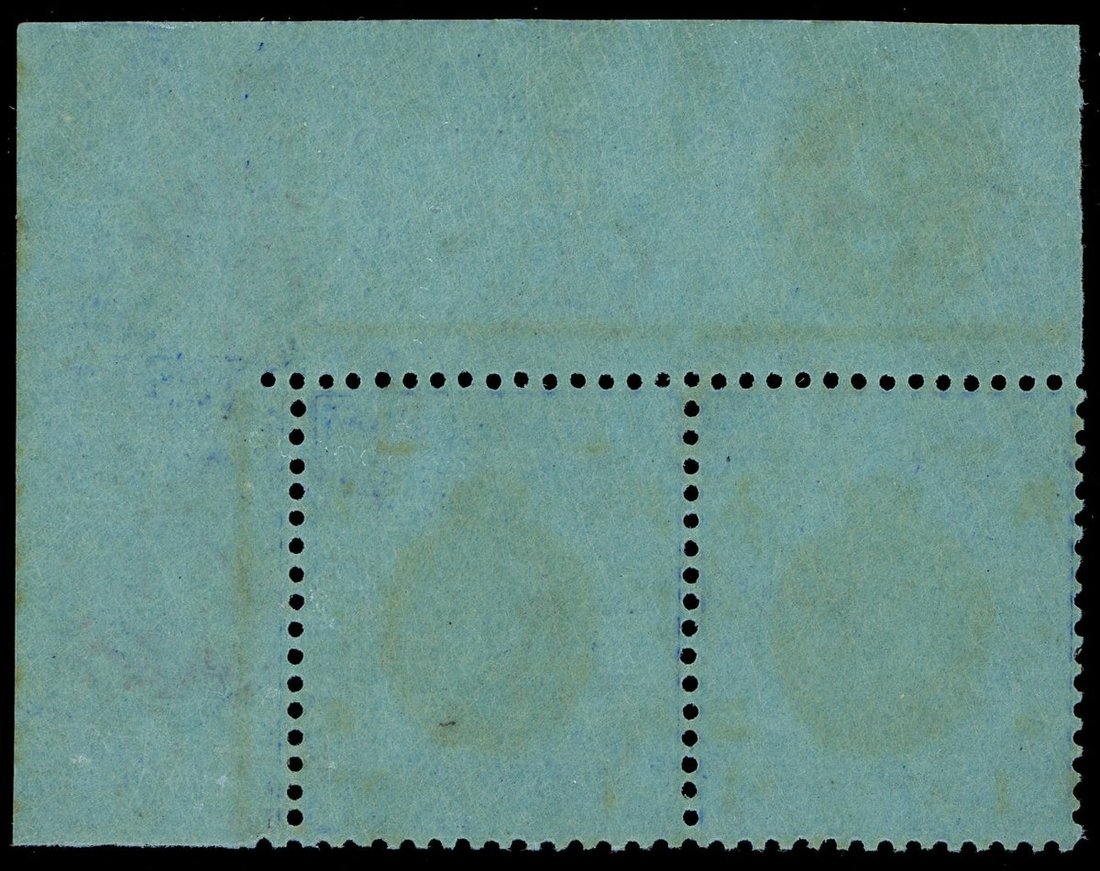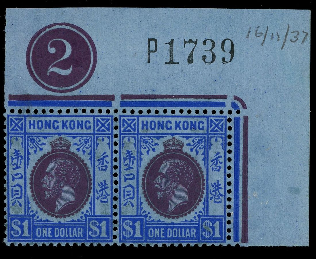 $1 dark purple and deep blue on blue in a corner plate pair sheet number "P1739", unmounted mint