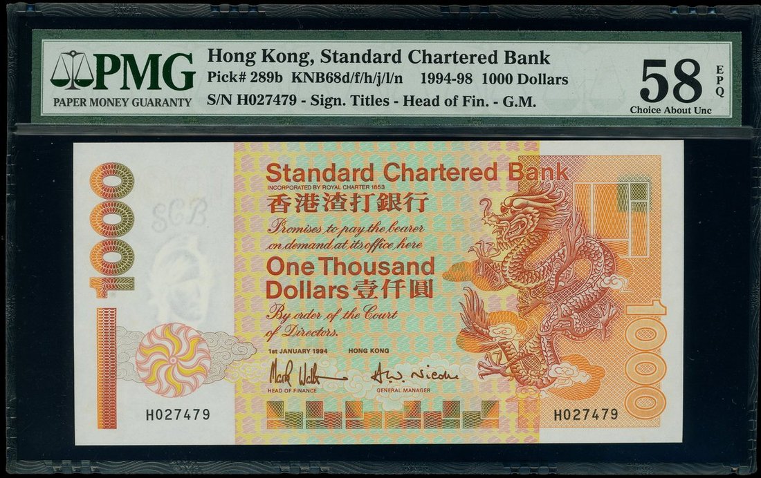 1994年渣打銀行1000元,編號H027479,PMG 58EPQ
