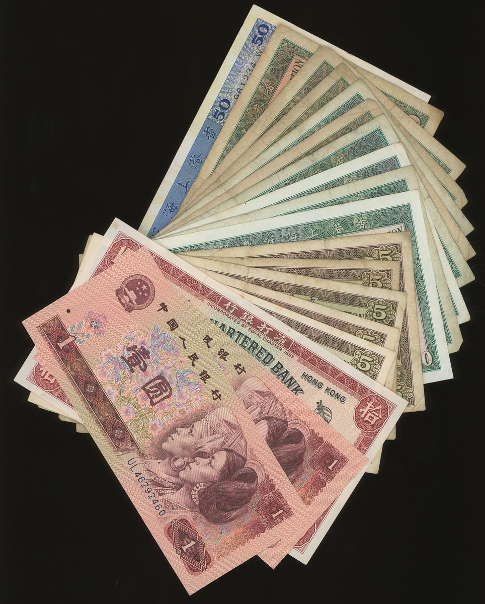 Hong Kong, group of notes from circulation, 1960's to 1970's, mainly from HSBC, face value of $175, also a 1997 Hong Kong uncirculated set and 2x People's Bank 1 yuan, 1990,