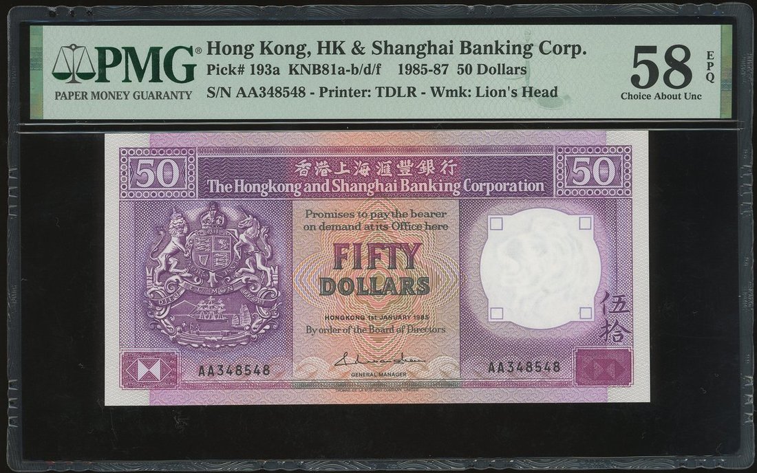 Auction: CSS58A - The Numismatic e-Auction - World and Hong Kong Banknotes and Coins