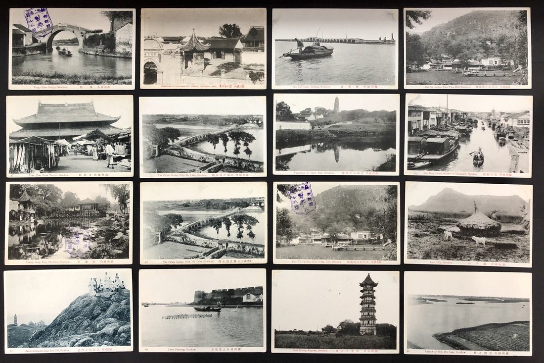 1930s A group of 16 postcards in Soochow City and nearby, including Kaoyi Garden of Tien ping Hill, Yuan Miao Temple, Huqiu Mountain, Prison Wharf, Hanshan Temple, etc., well preserved
