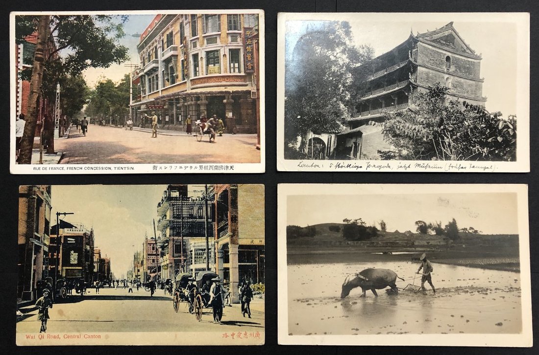 1930s three Canton postcards and one Tiantsin postcard of French Concession.