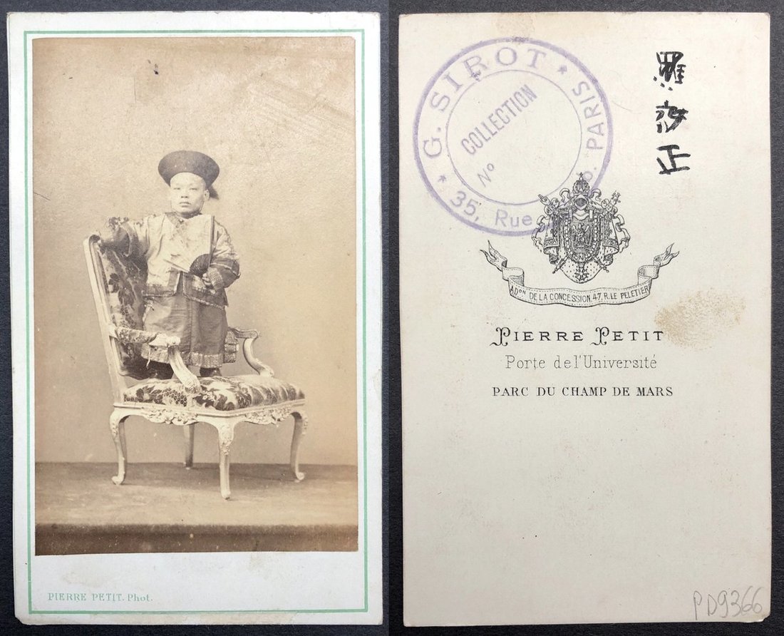 1870-1880s photo of Luo Yezheng, the most shortest person in the Qing Dynasty, with his own brush signature on the back, rare. Size: 10.5 x 6.5cm