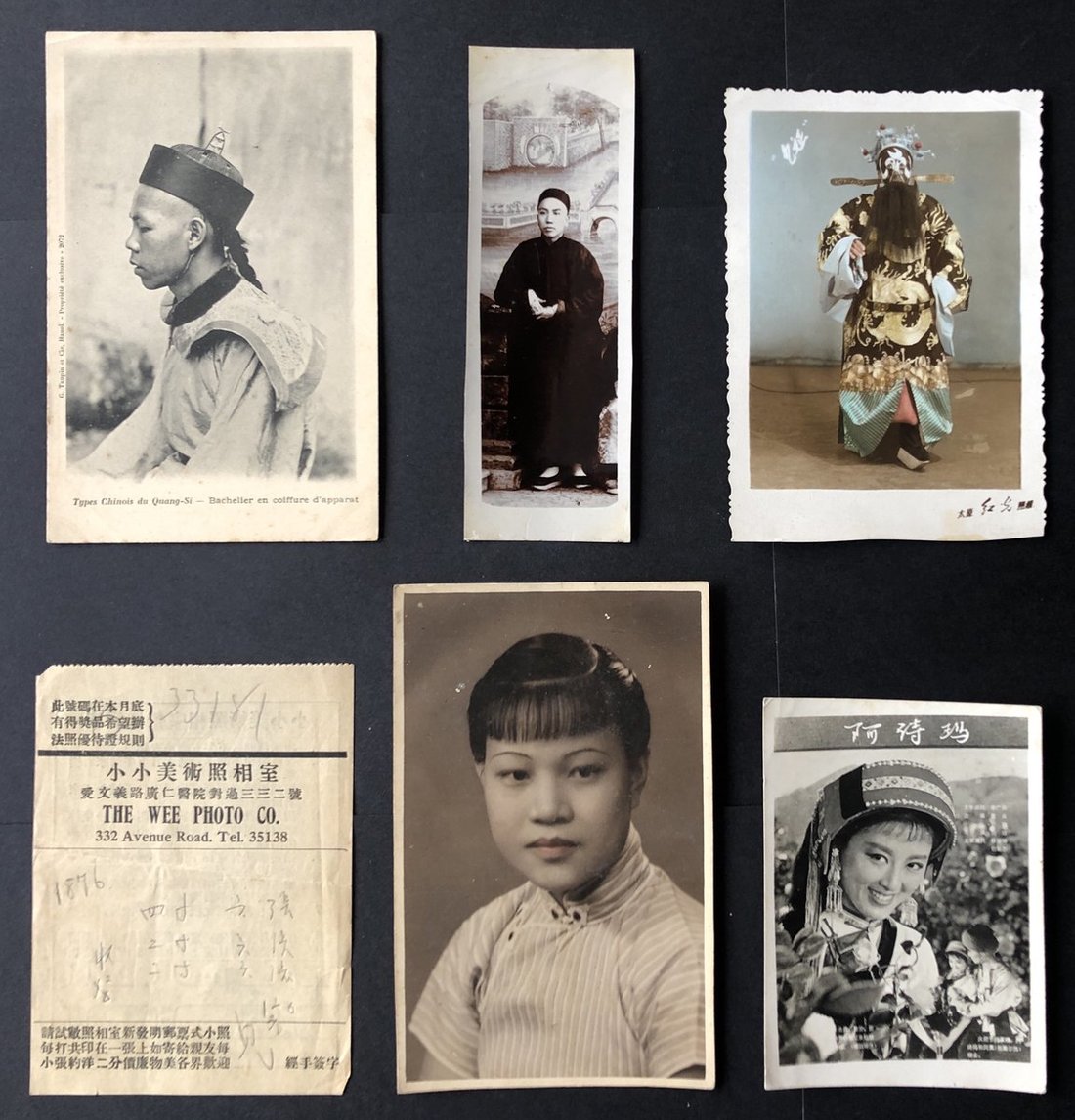 1900-1970s A small lot of 6 photos from the Qing Dynasty to New China also a photo studio brochure.