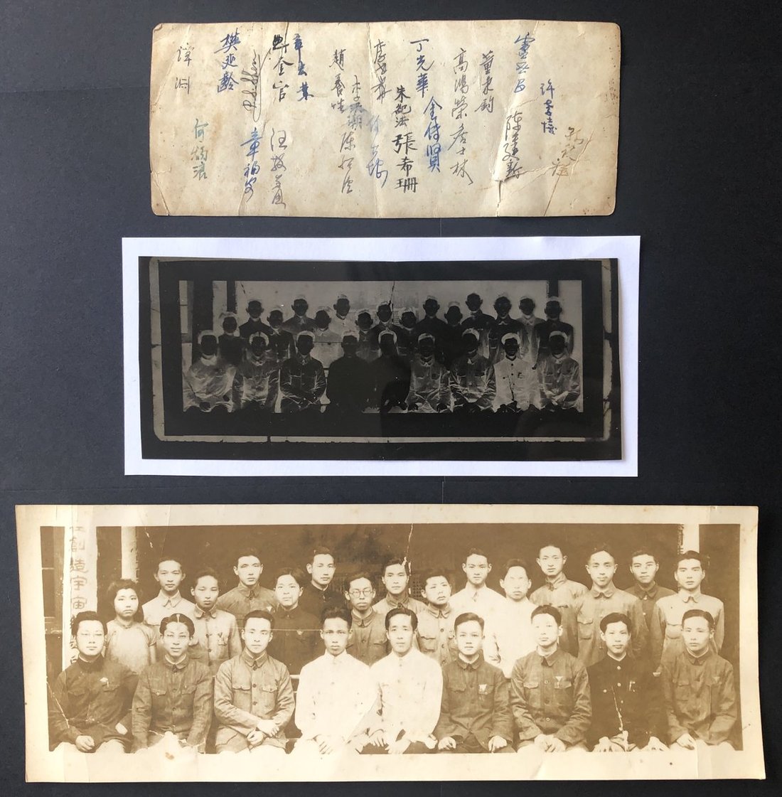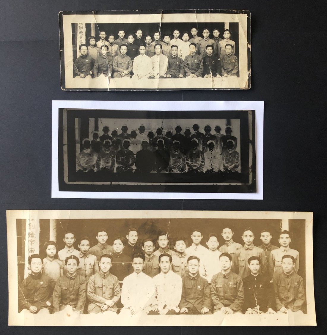 1930-40s a group photo of a member of a Chinese academy, including two photos of different sizes and one negative. The name of each person is written on the back of the photo. Size: 17 x 7cm, 10 x 27.5cm