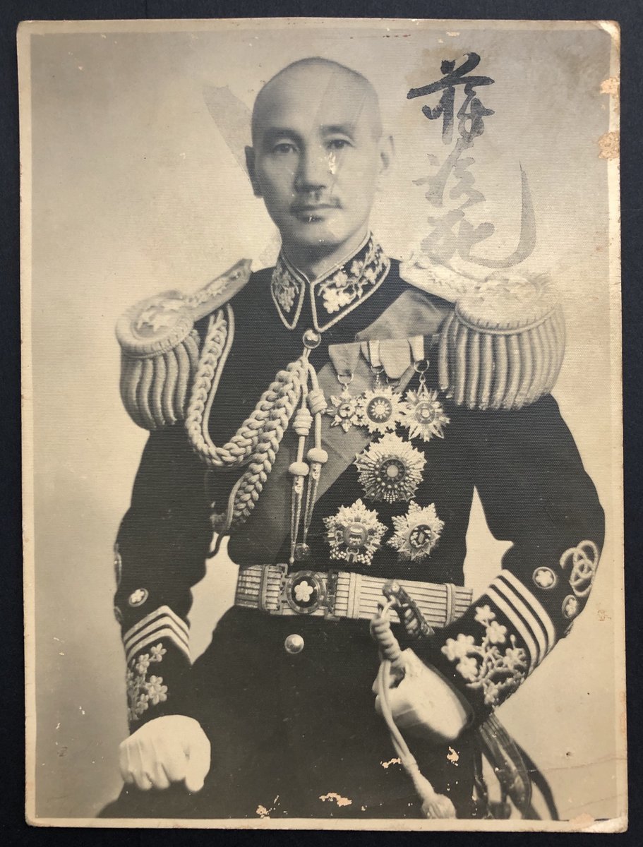 1930年代蔣介石軍裝公式照片, 厚相紙, 上有黑墨塗污.