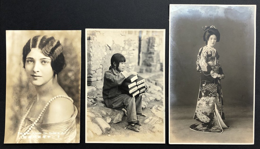 1930年代老照片三枚; 包含满洲少女, 日本和服女士及柯達A-1相紙西方少女.