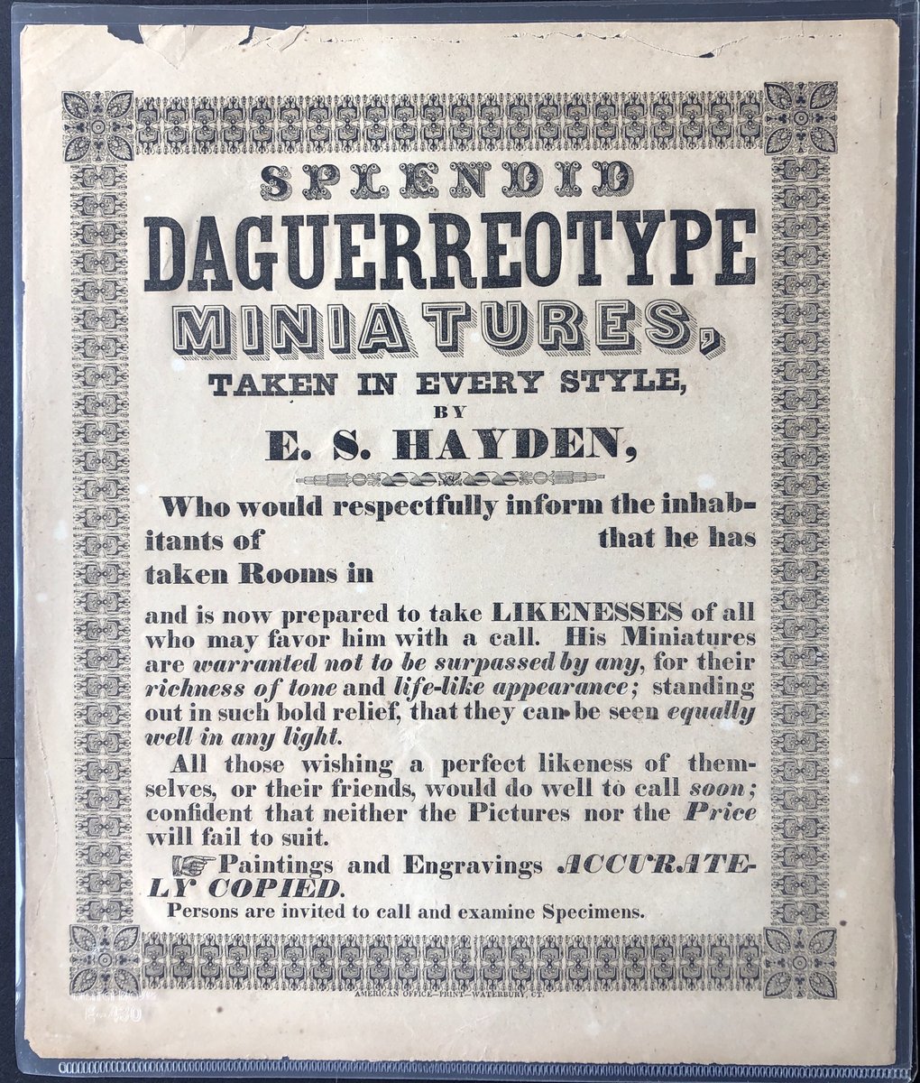 1840-1850s advertising sheet of Daguerreotype photo print. The whole sheet is printed with different type of moveable font, only the upper edge has a small damaged, otherwise a fine item.