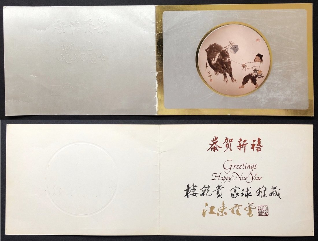 1990s the famous painter Fan Zeng wrote a New Year's card to Lou Qiangui the famous Chinese actor and a generation of masters in the music industry. Rare.