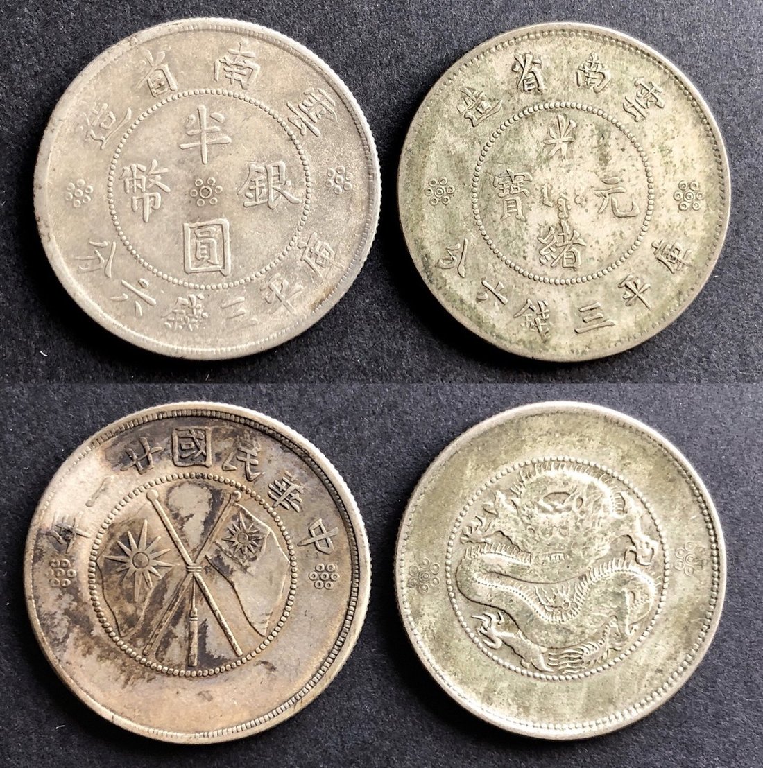 1875 and 1932, Yunnan Province, a pair of silver 50 cents coins, minted in the Guangxu period and the Republican period respectively, fine to very fine.