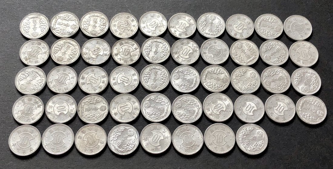 1941-1942年滿洲國鋁幣48枚一組,VF品相。
