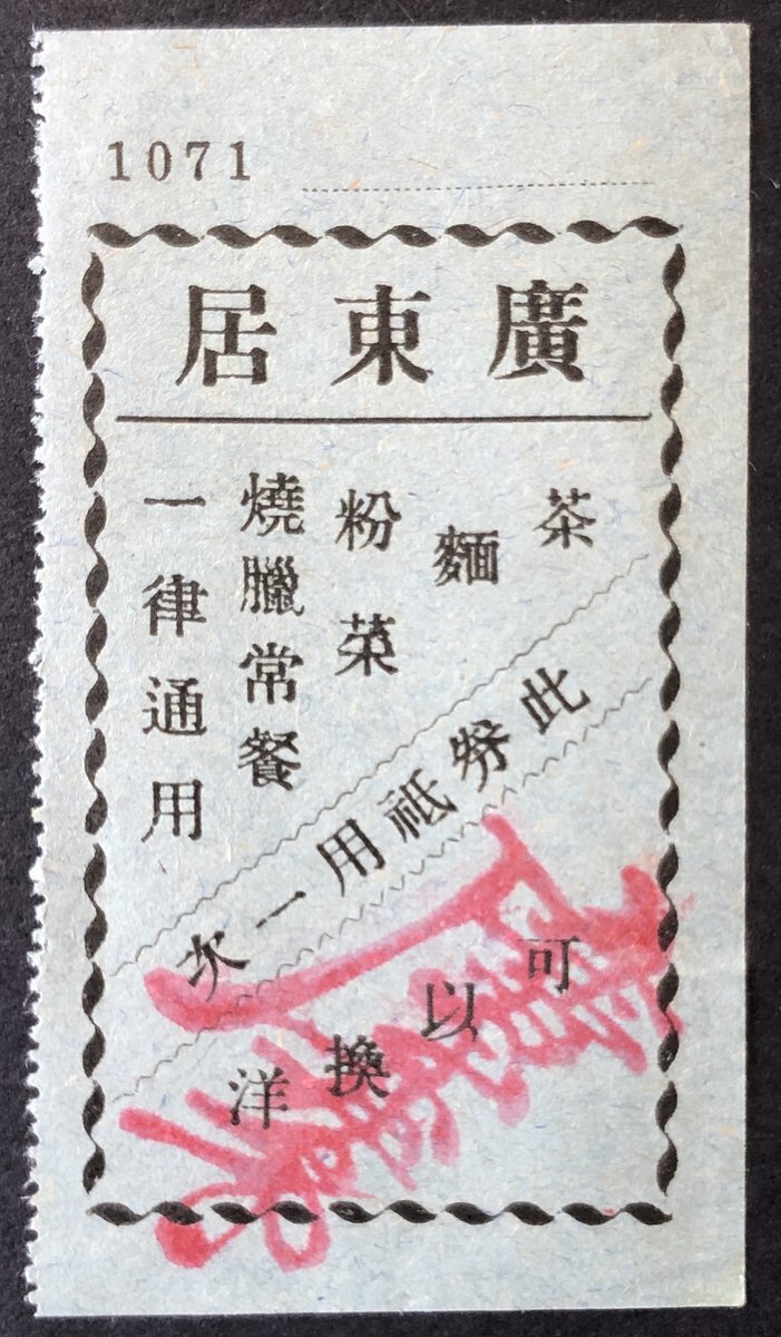 1910s-1940s, Republican period, dining coupon for use in Kwangtung Province, uncirculated.