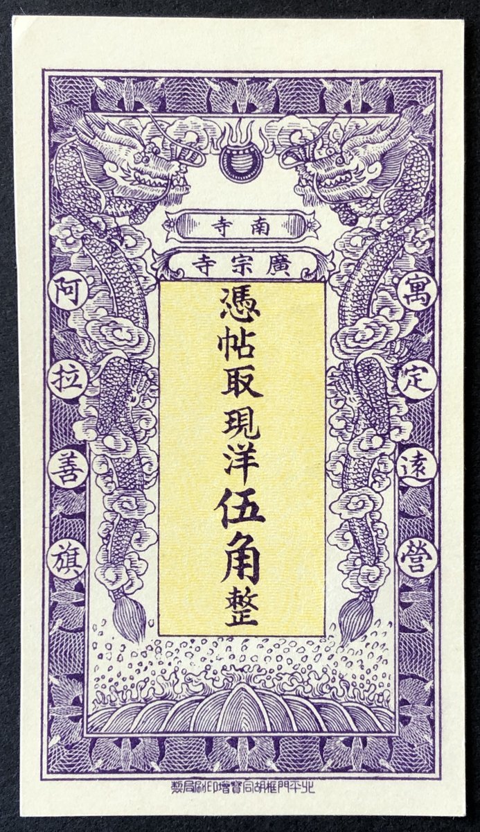 1910s-1940s, Republican period, private issue, 'Guang Zong Si', 5 chiao, uncirculated.