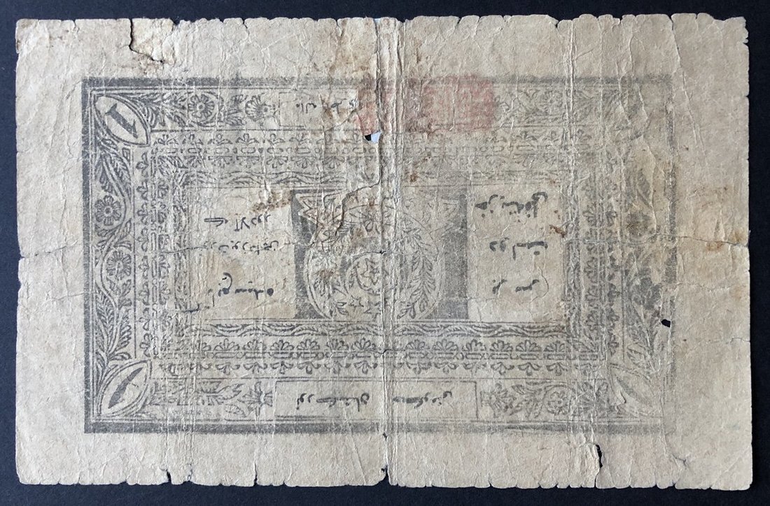 1930s, United Islamic Republic of East Turkestan, 1 Sar paper note, (Pick S3046), very good approaching fine, tape repair on reverse.