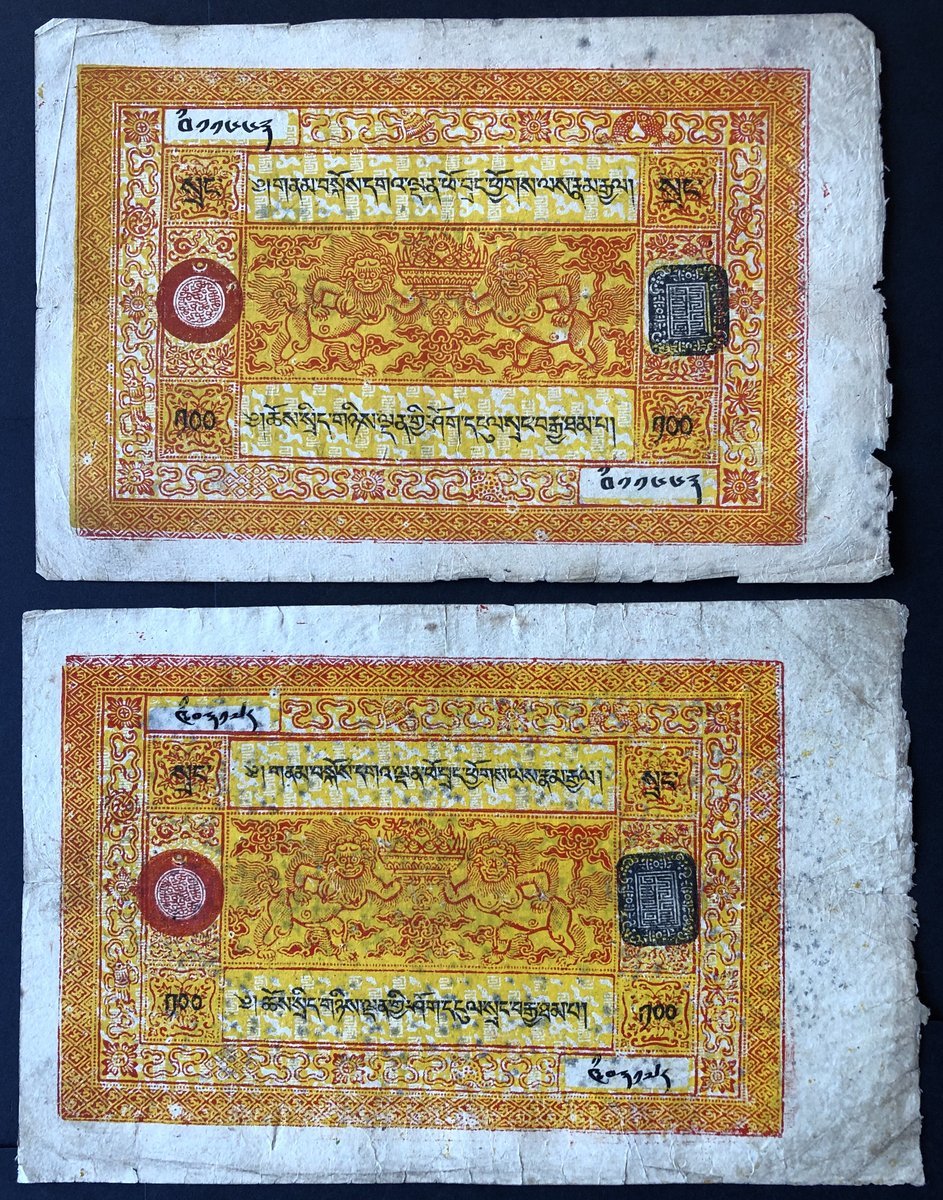 1942-1959, Government of Tibet, a pair of 100 Srang, (Pick 11a), fine.