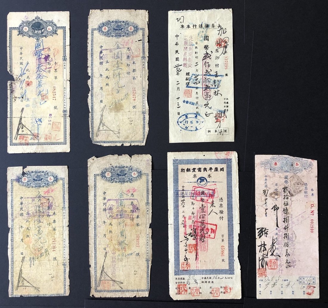 1947-1949年民國時期銀行本票6枚一組,VG至VF品相。