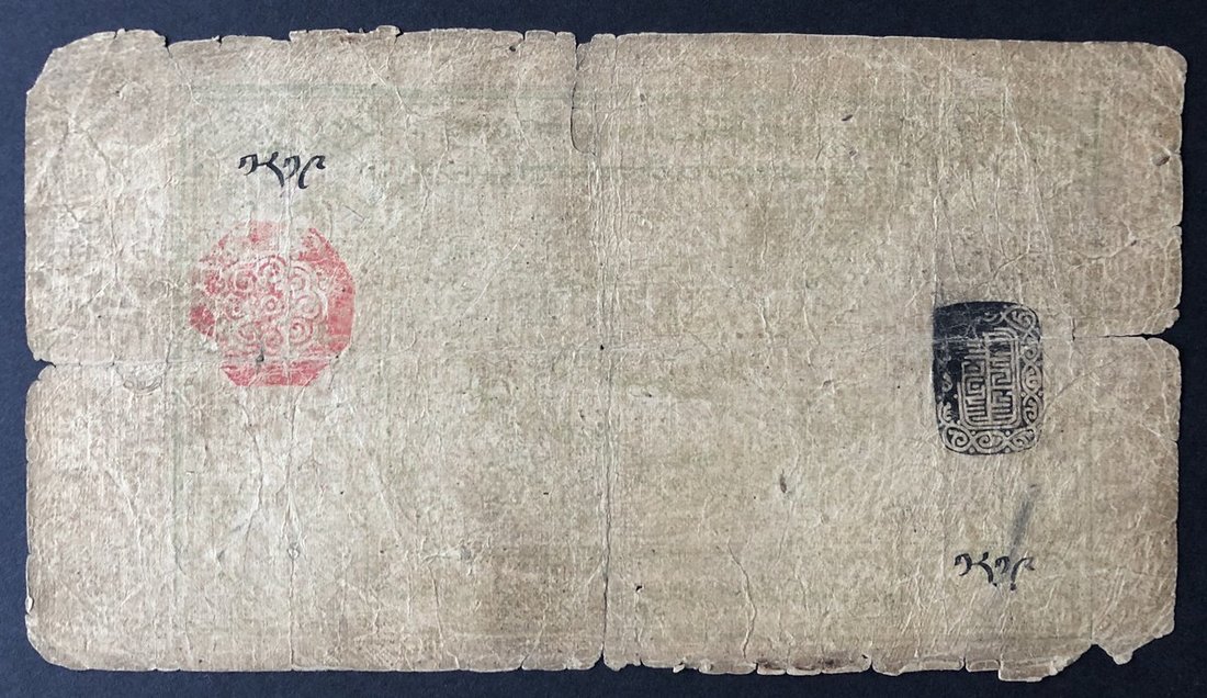 ca. 1912, Government of Tibet, 5 Tam, serial number 1819, (Pick 1), good to very good.