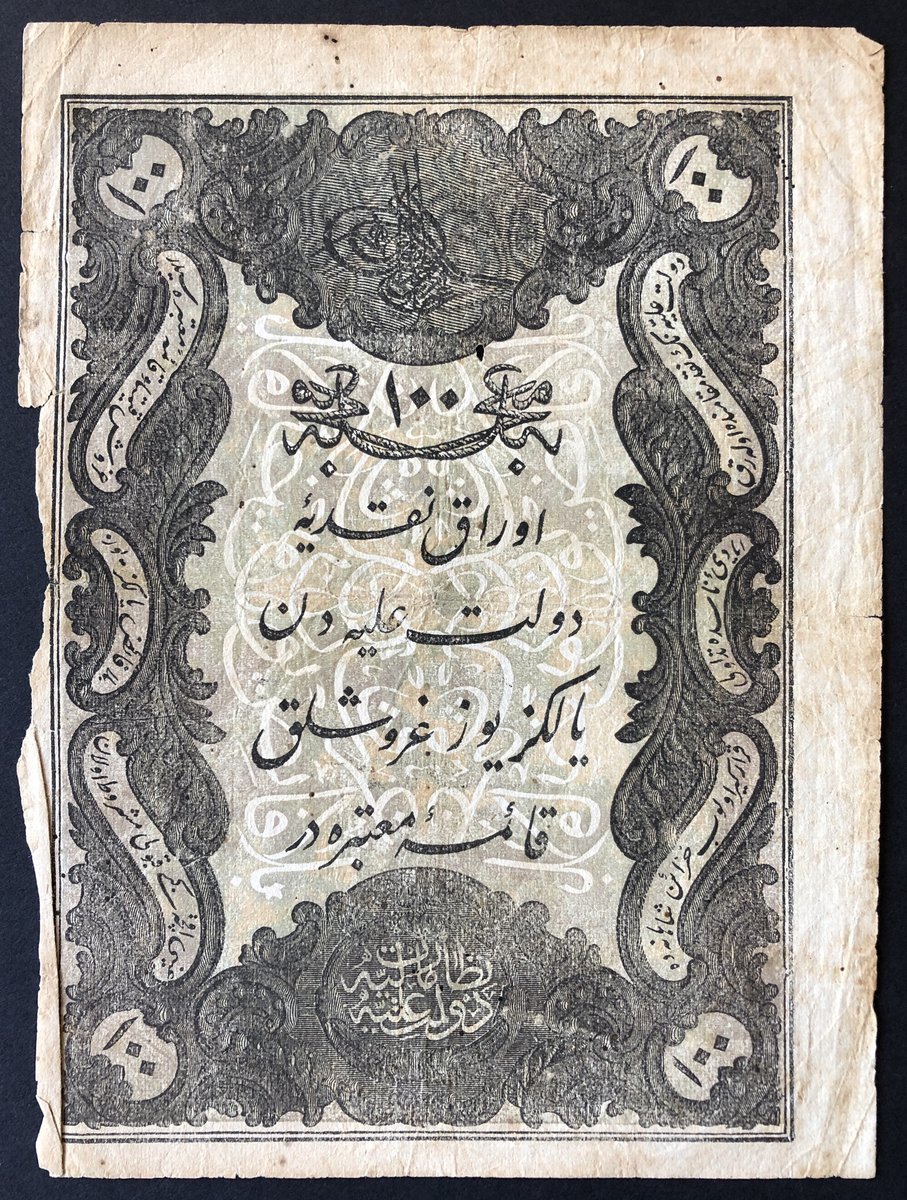 1861 (AH1277), Turkey,100 Kurus, vertical format, (Pick 41), about fine.