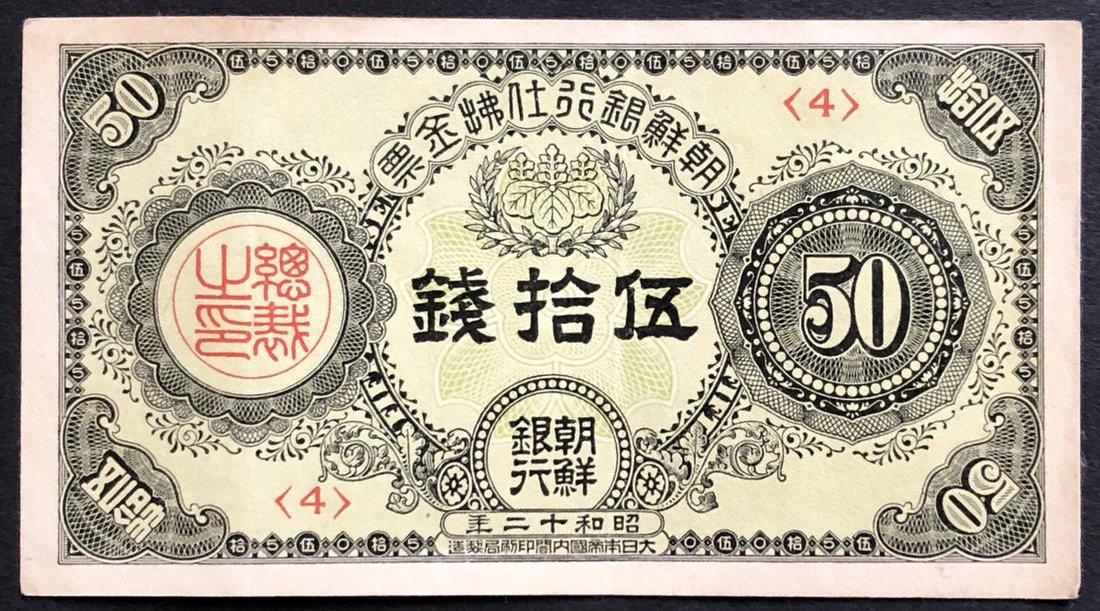 1937, Bank of Chosen, 50 sen, (Pick 28), extremely fine nearing about uncirculated.