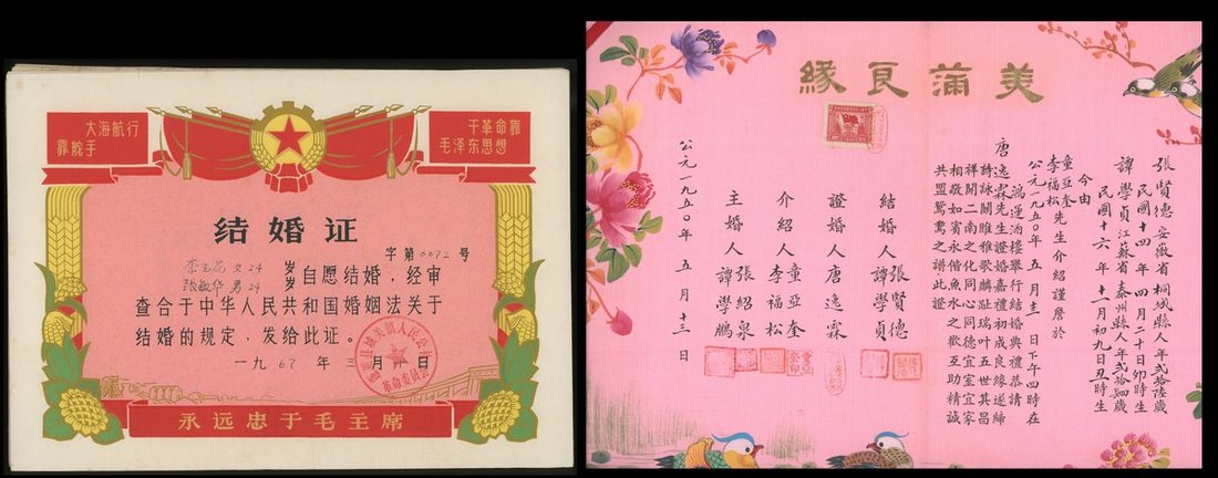 1950 - 1970s A lot of few Marriage Certificates with different designs