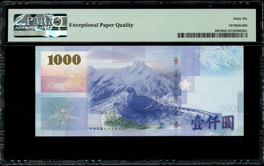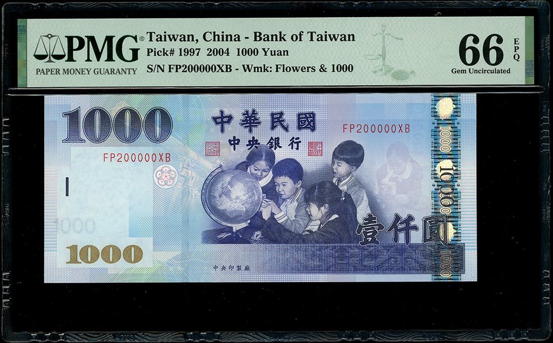 2004年台灣銀行1000元,趣味號FP200000XB,PMG 66EPQ