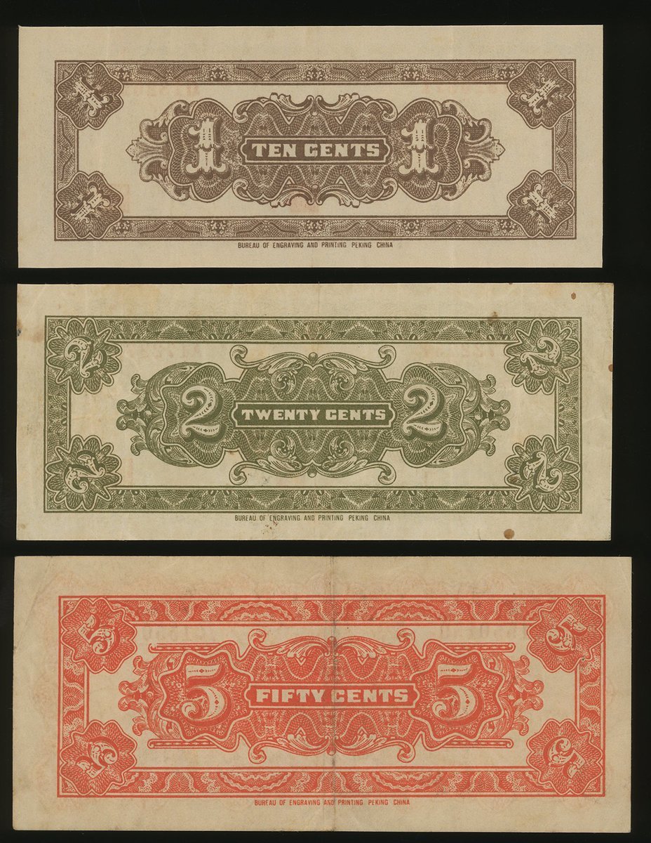 The Federal Reserve Bank of China, a group of 10, 20 and 50 cents, 1938, serial numbers G1826571, A1722731 and C1550159, (Pick J51a-J53a), very fine to extremely fine (3)