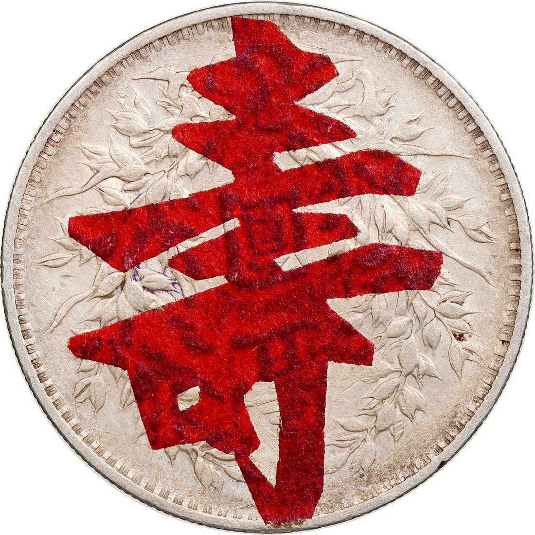 Republic of China, silver $1, 1914, Yuan Shih Kai at obverse, red 'Shou' character at reverse, extremely fine to about uncirculated