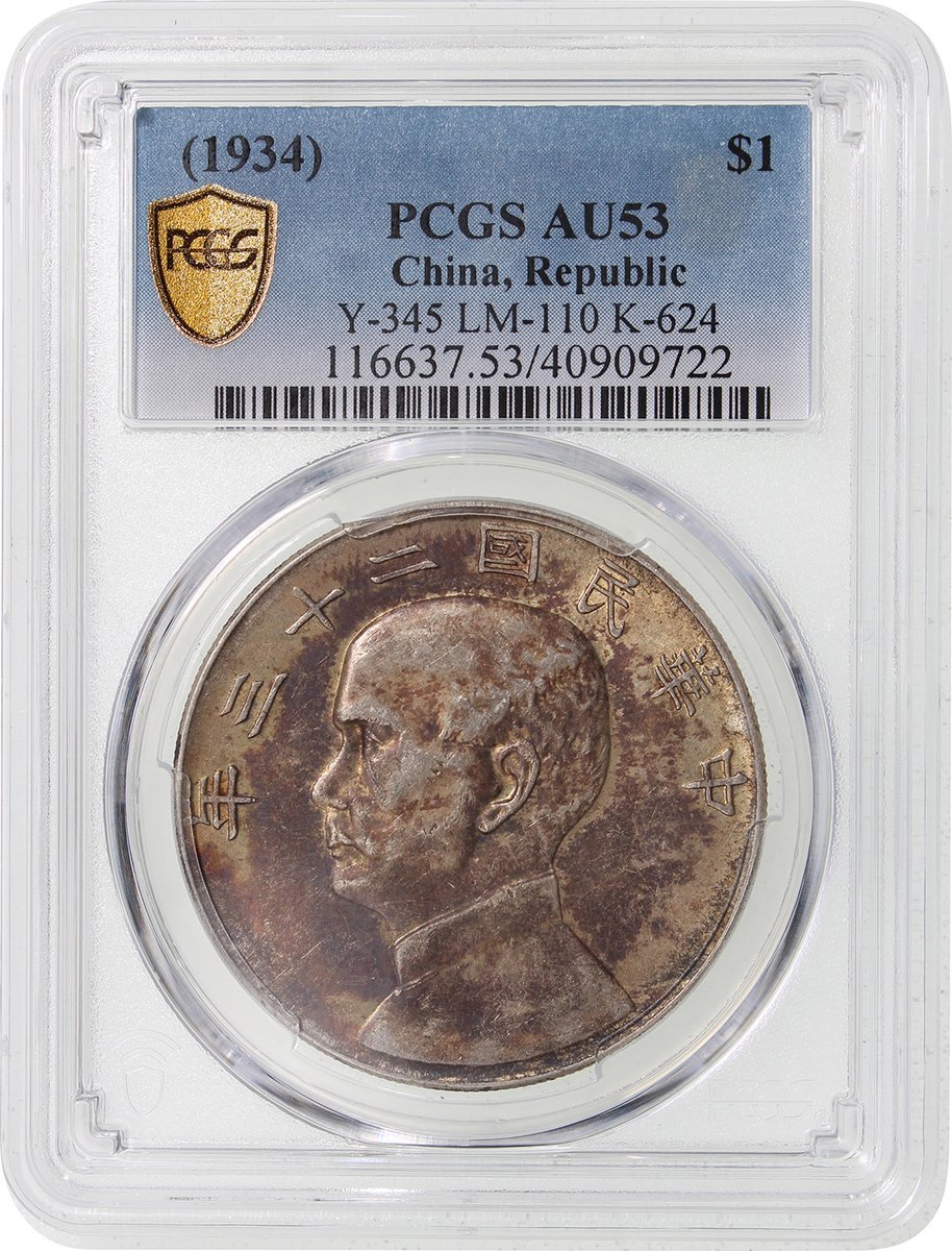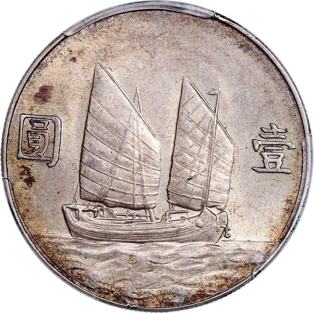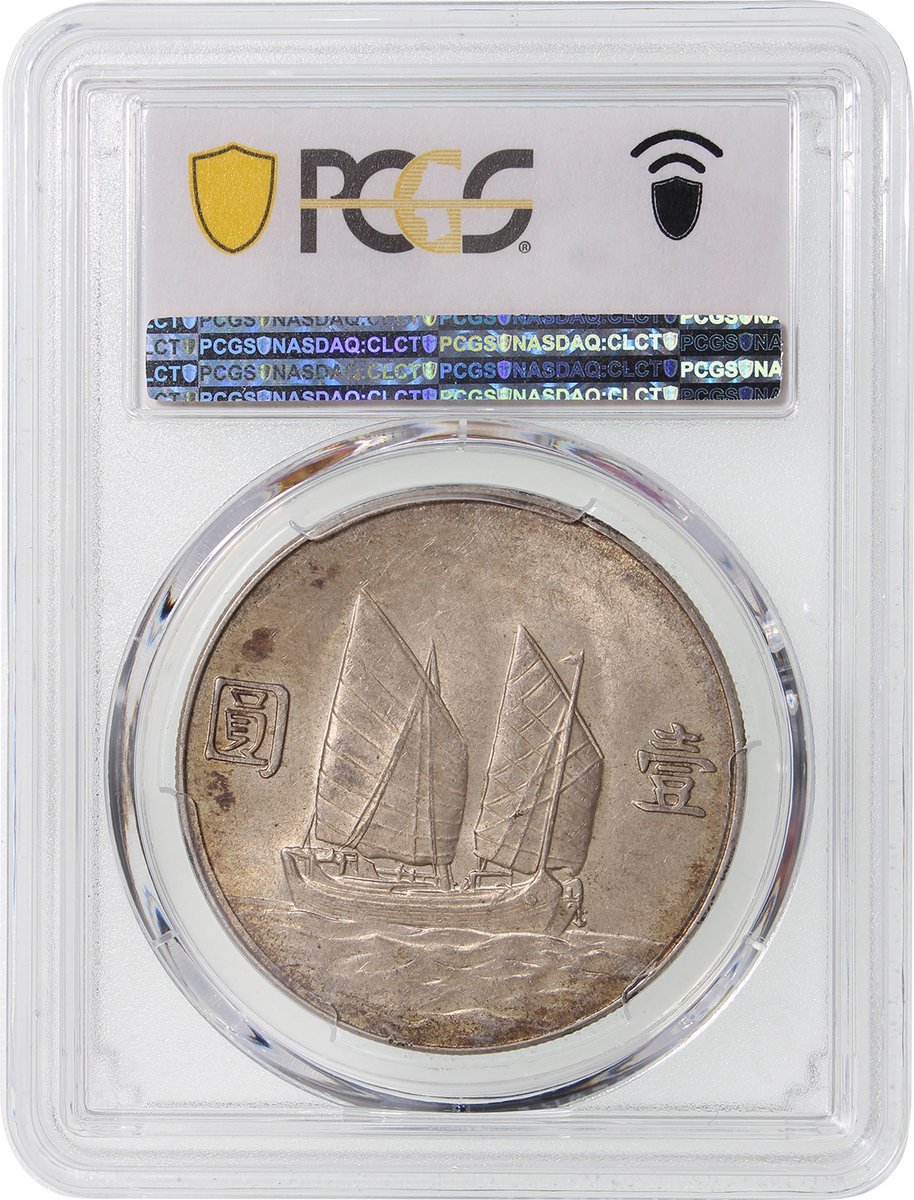 民國二十三年孫像船洋一元,PCGS AU53,正面有氧化