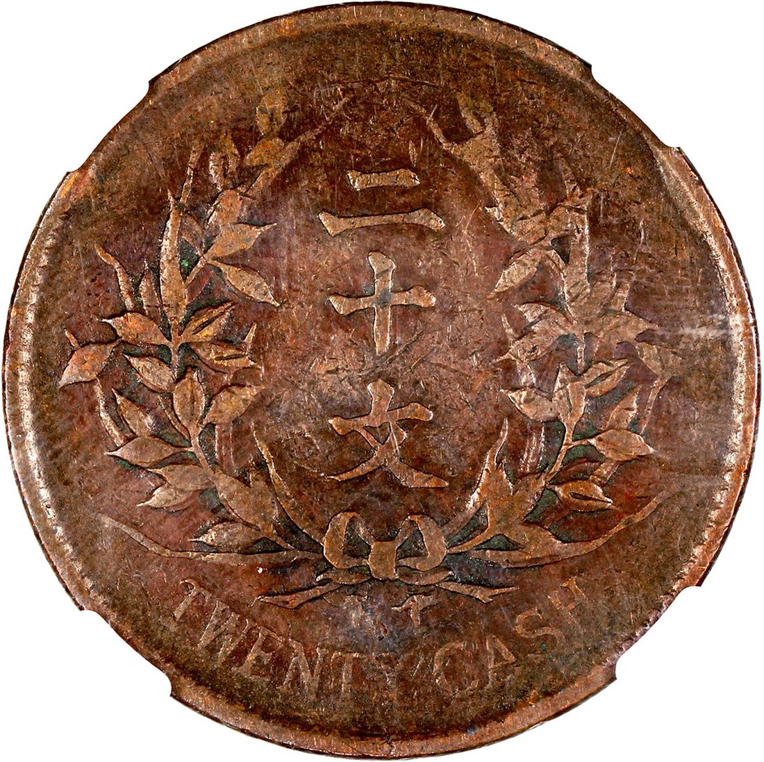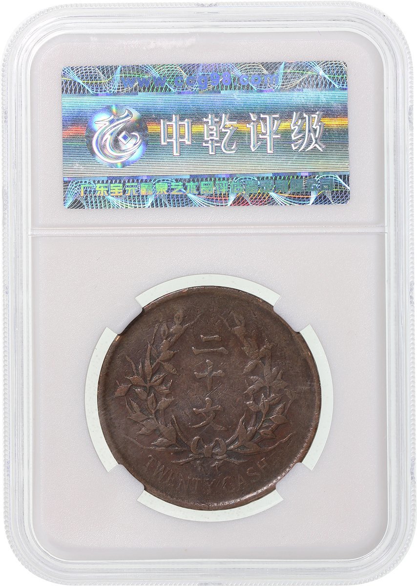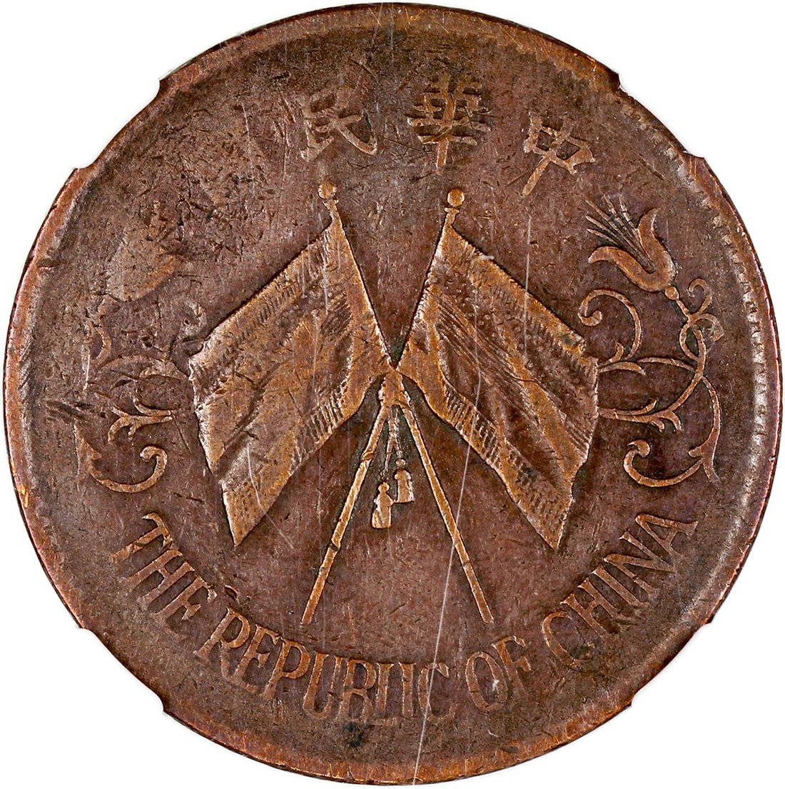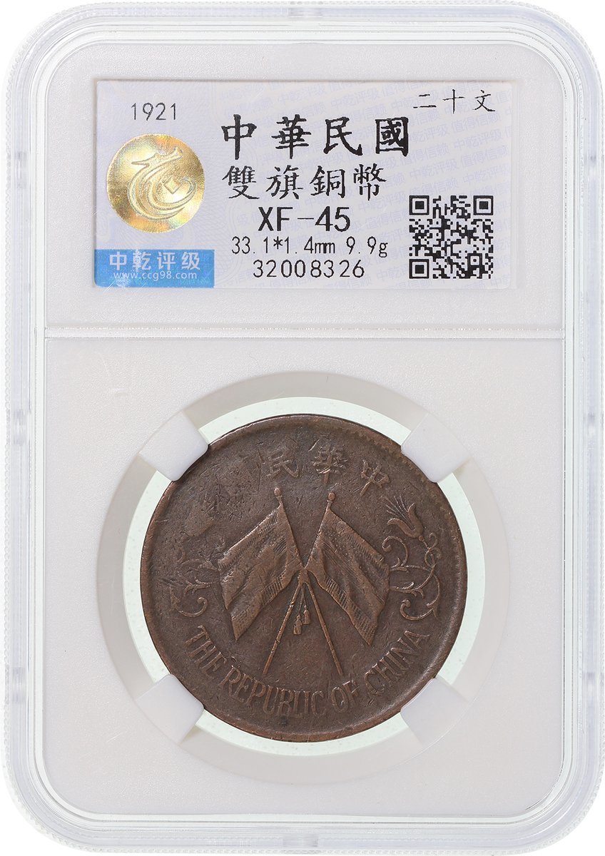 Republic of China, copper 20 cash, 1921, crossed flags at obverse, 33.1x1.4mm, 9.9g,