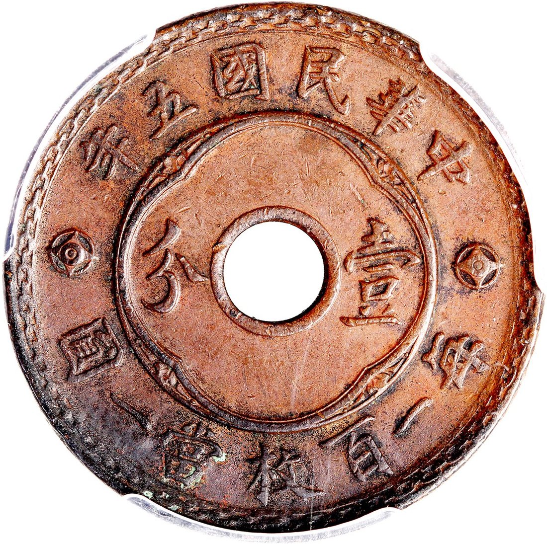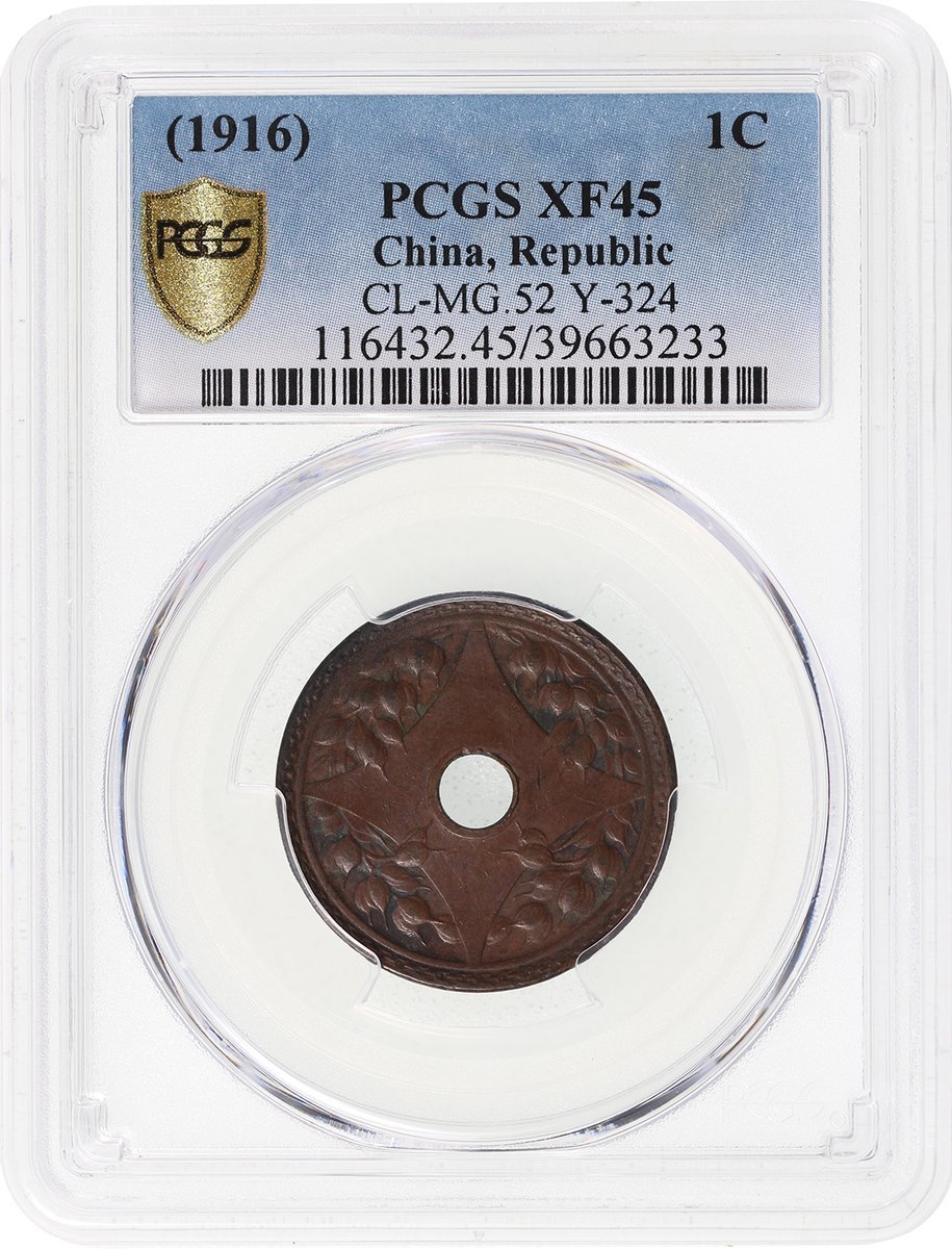 Republic of China, copper 1 fen, 1916, (CL-MG.52, Y-324), PCGS XF45