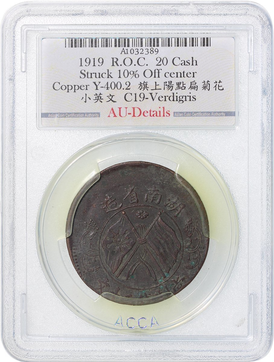 民國八年湖南省造二十文,鑄打偏移錯體, ACCA AU Details