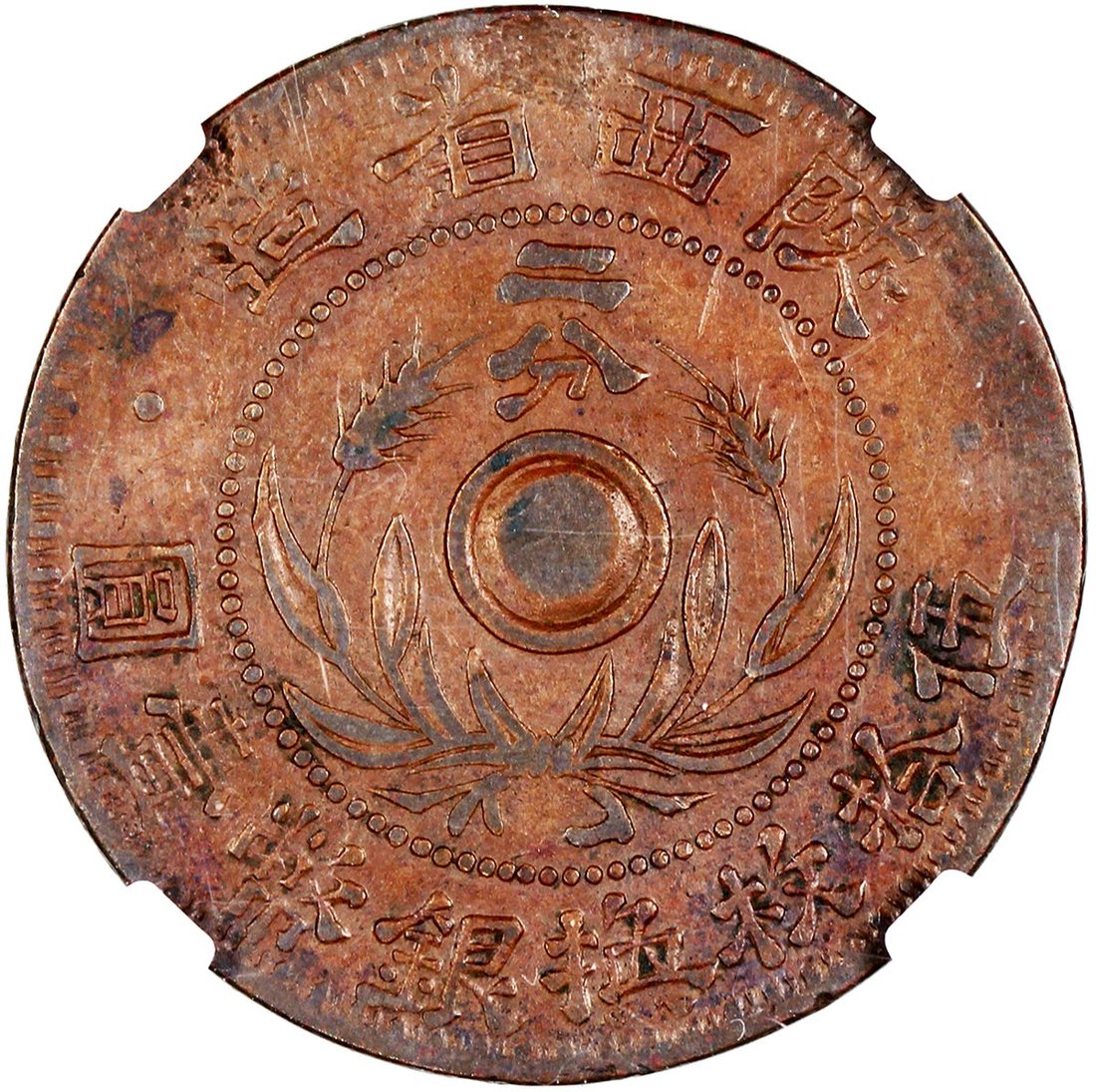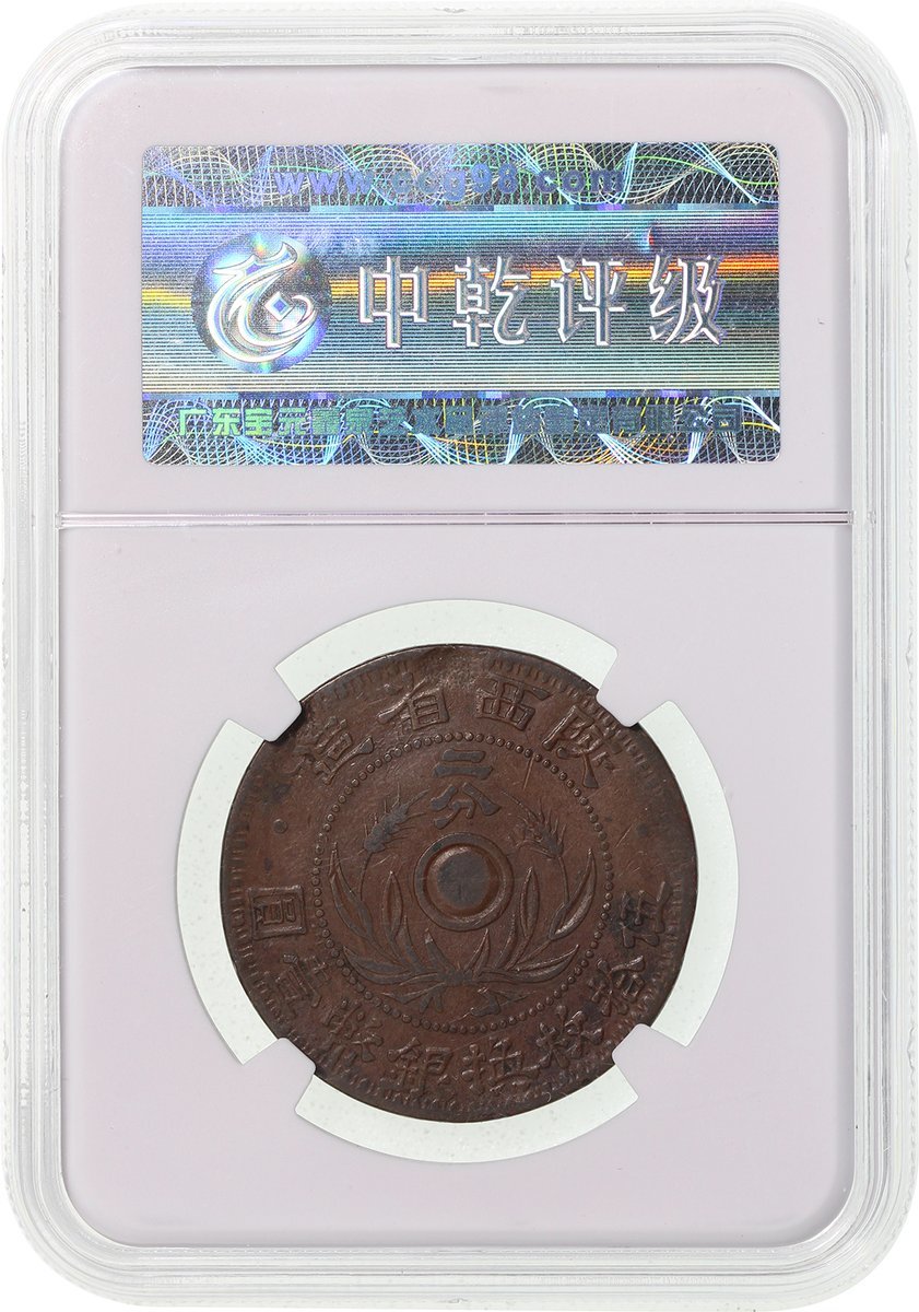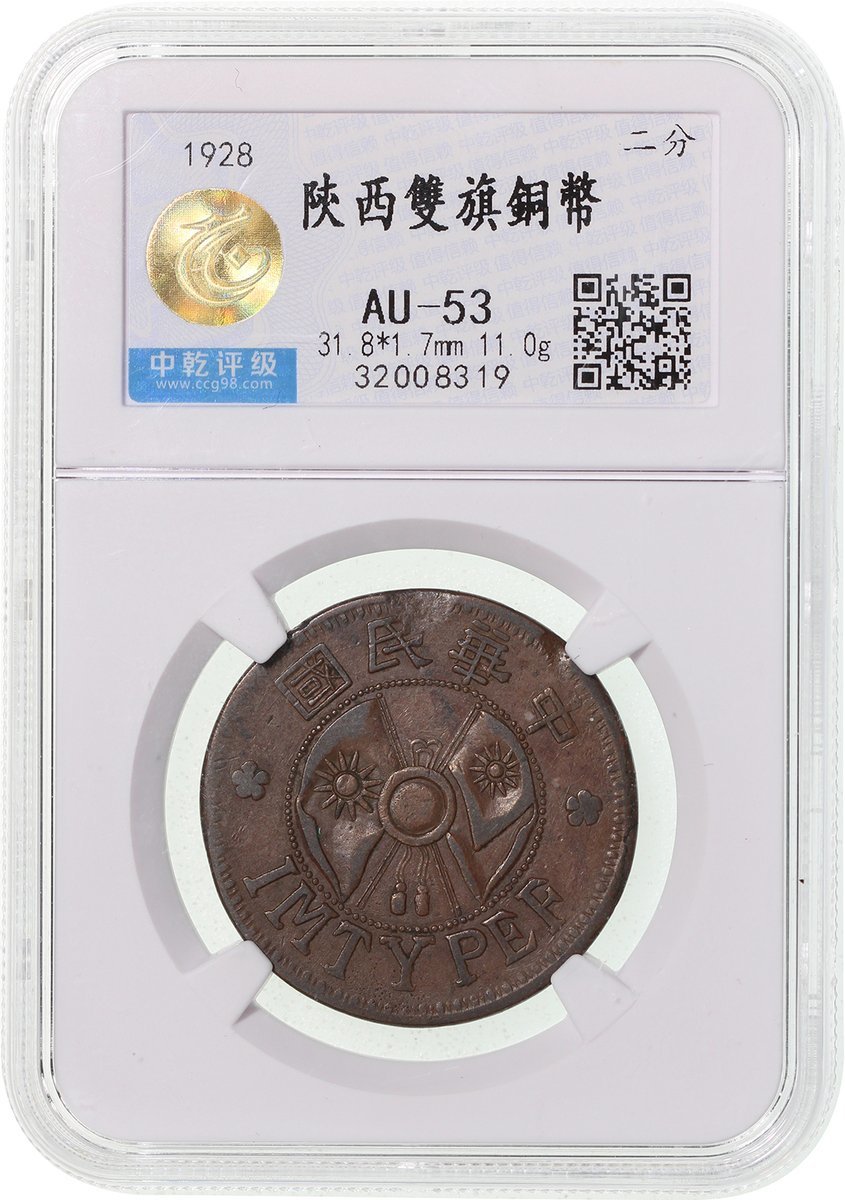 1928年陝西省造雙旗二分銅幣,中乾AU53