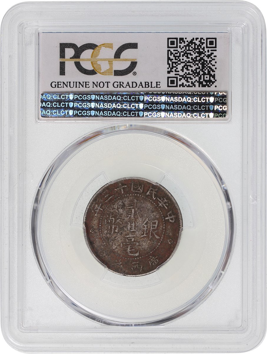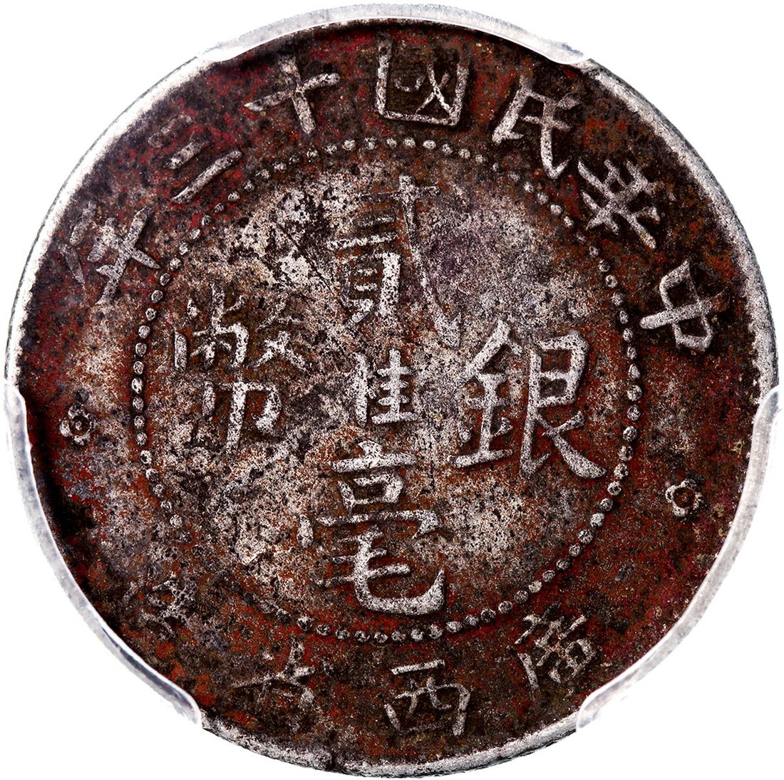 民國十三年廣西省造2毫銀幣,背中心「桂」字,PCGS VF Detail,有環境損害