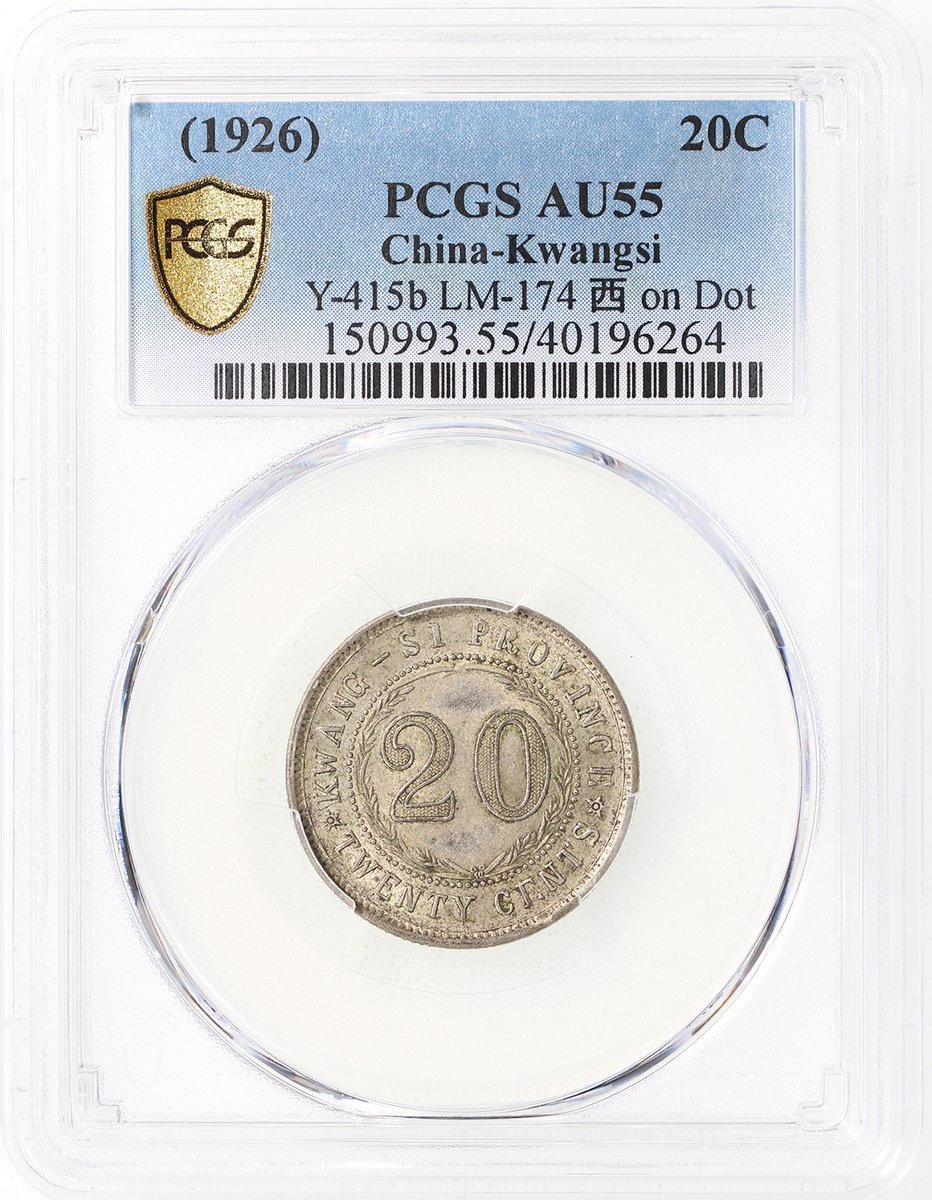 Kwangsi Province, silver 20 cents, 1926, (Y-415b, LM-174), PCGS AU55