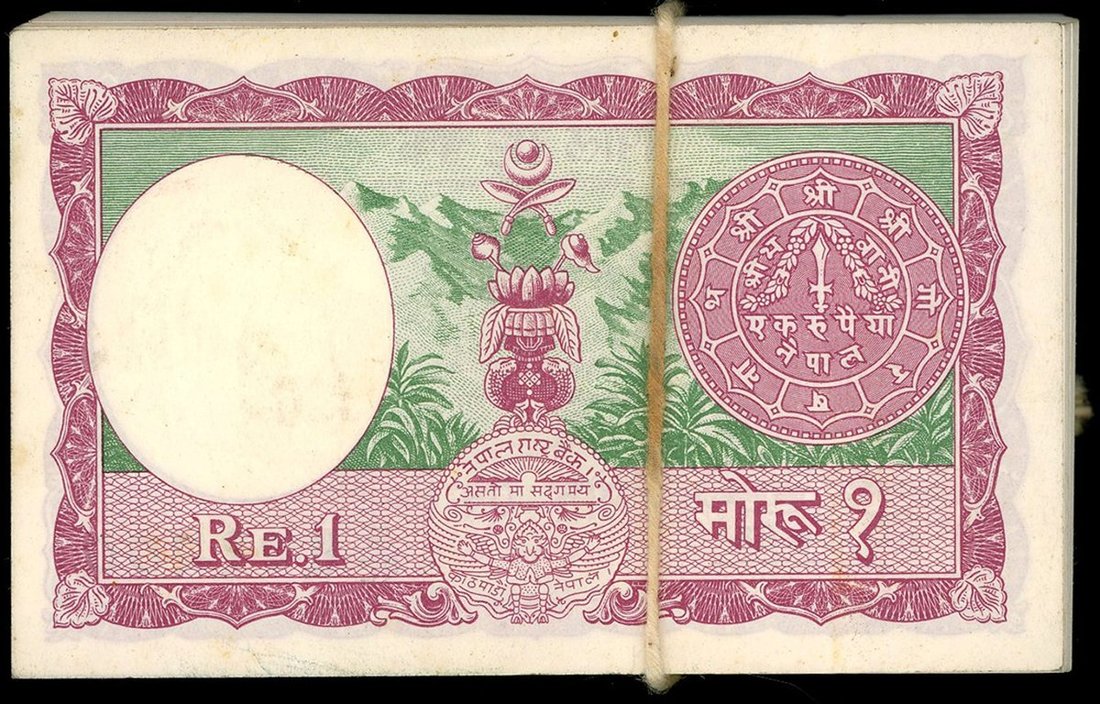 Nepal, a consecutive run of 100x 1 rupee, no date (1965), 521101-521200, (Pick 12), about uncirculated to uncirculated with light edge toning, tied by string as issued, the first and last few notes with minor creases (100)