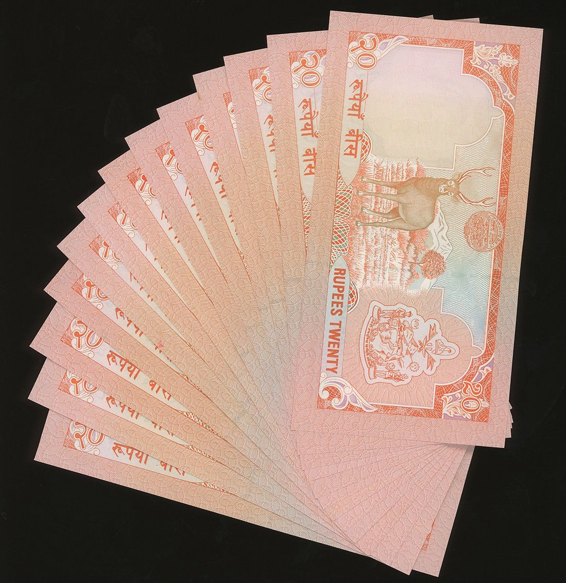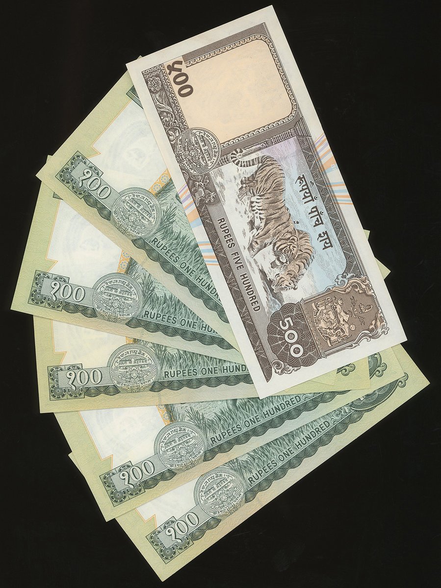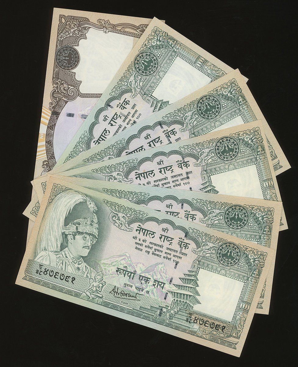 1981年系列尼泊爾一組35枚,2至500盧比,無日期,均Dipendra Purush Dhakal簽名,UNC,輕微軟折