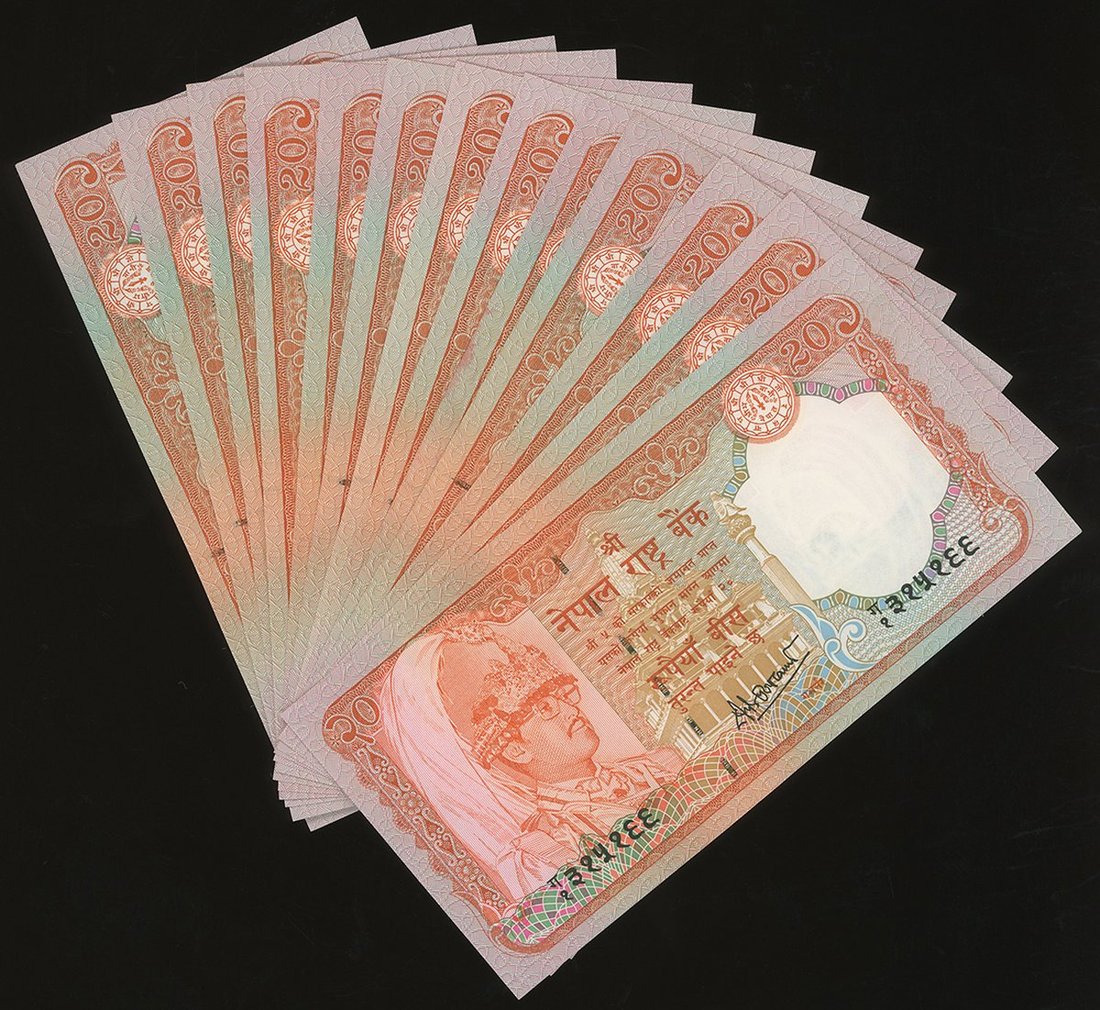 Nepal, group of 35, series of 1981, all signed by Dipendra Purush Dhakal, consisting of 2 (12), 5 (1), 10 (1), 20 (13), 50 (14), 100 (5) and 500 (1) Rupees,