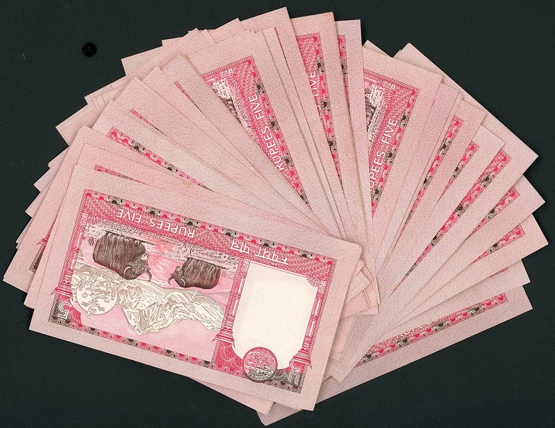 Nepal, 50x 5 Rupees, ND (2005), mxied serials containing some consecutives, all signed by Dr. Rawal,