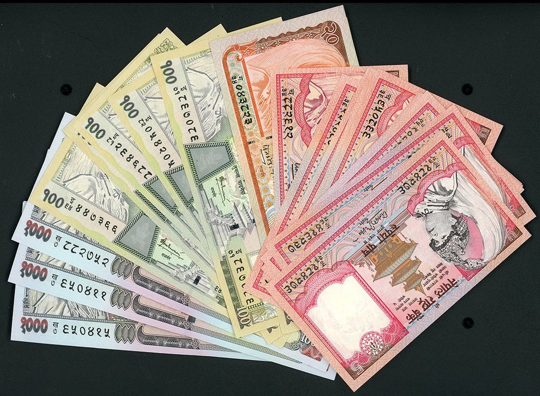 2002及05年尼泊爾一組30枚,無日期,包括5盧比13枚,20盧比2枚,100盧比7枚及1000盧比8枚,大部分EF至AU,若干近乎UNC