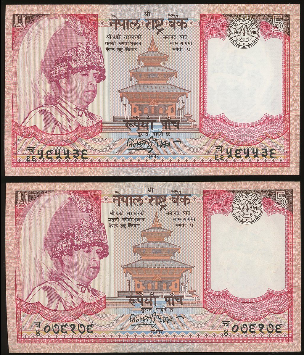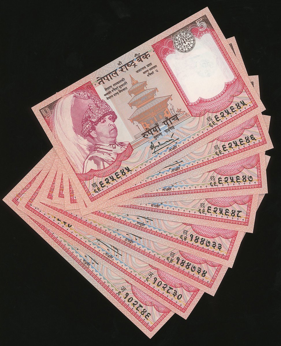10x 5 Rupees, signed by Dr. Rawal (2) and Bhattarai (8),