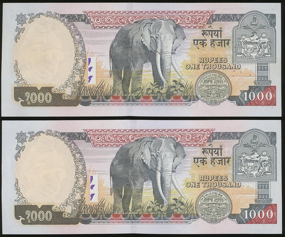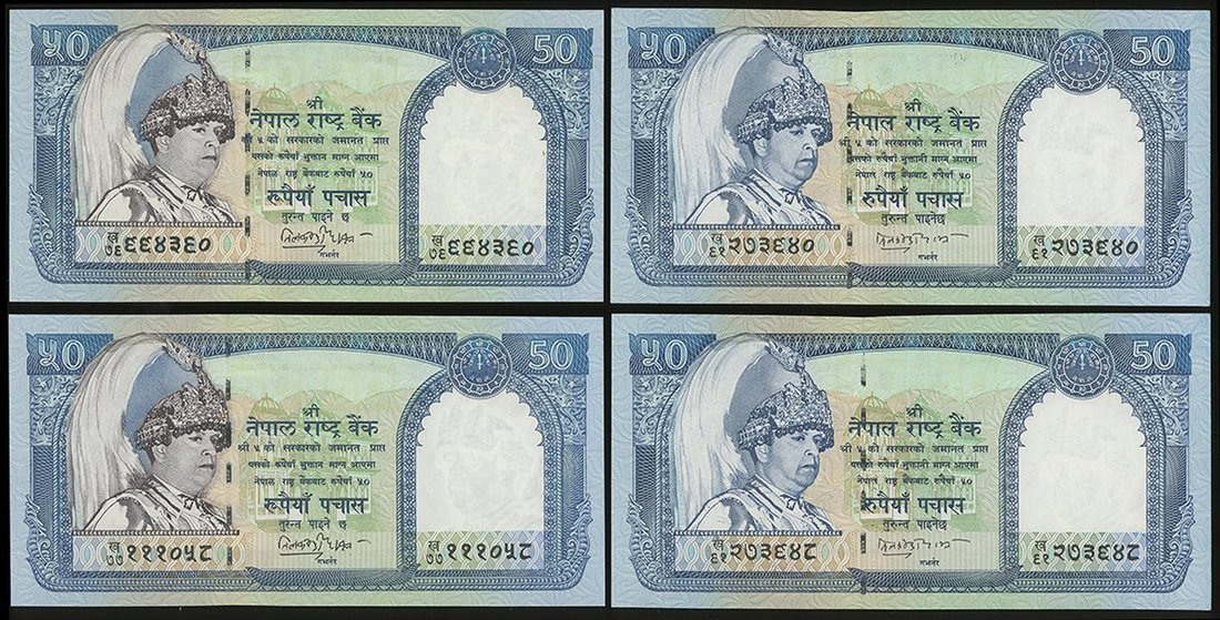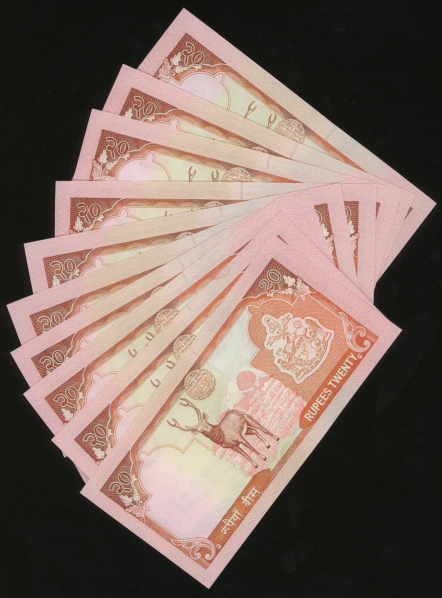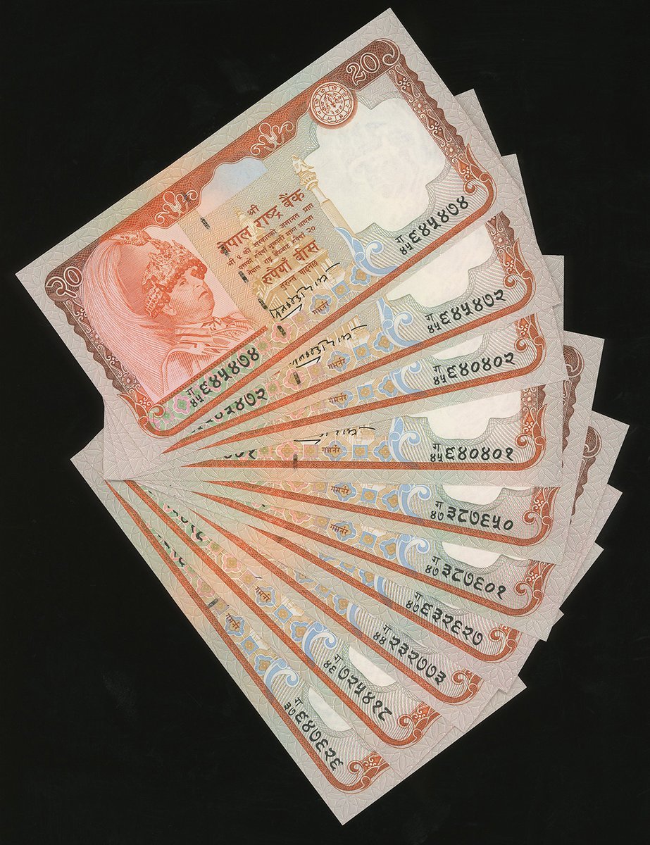 2003-05及2005-06年尼泊爾紙鈔一組40枚,不同簽名版別,5盧比10枚,20盧比10枚,50盧比4枚,100盧比5枚,500盧比5枚及1000盧比6枚,若干連號,UNC,有軟折