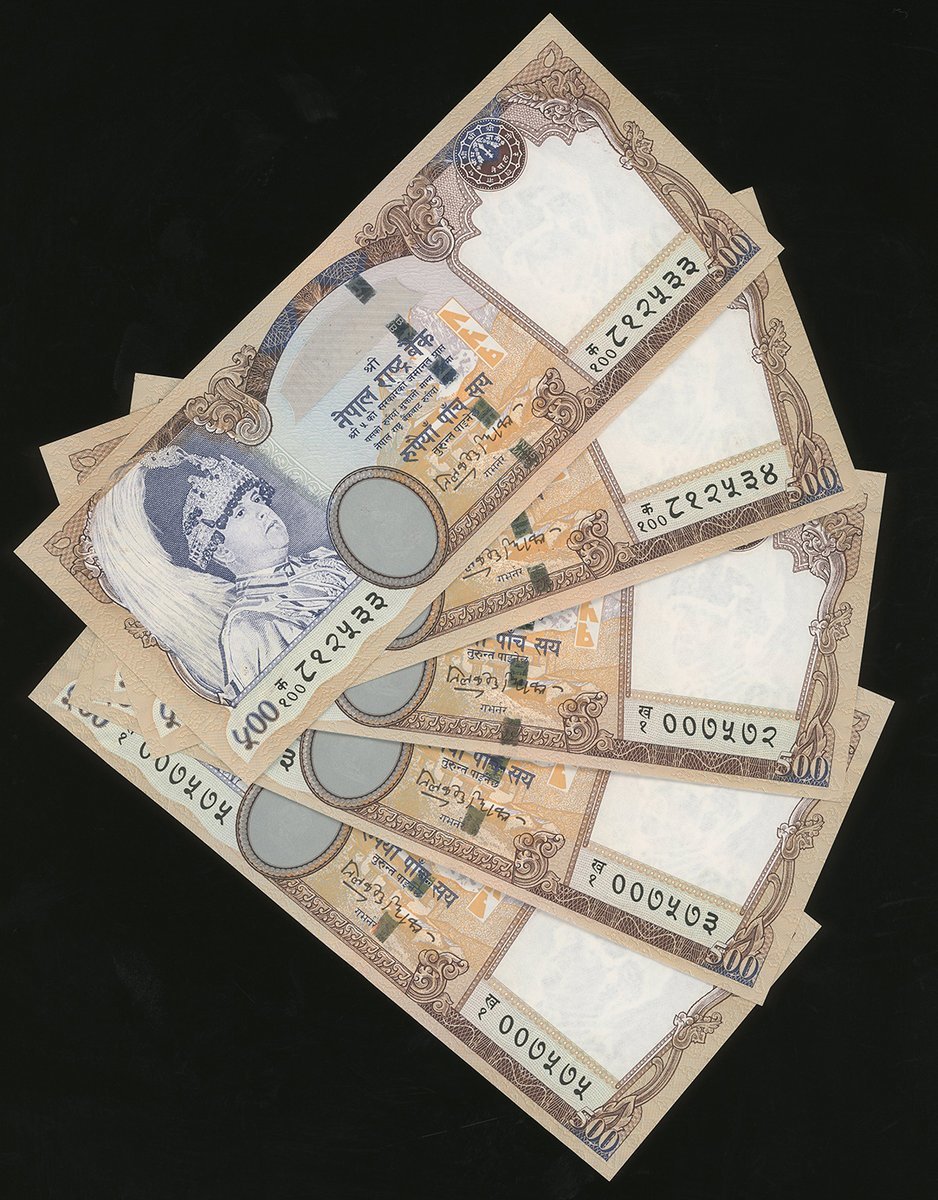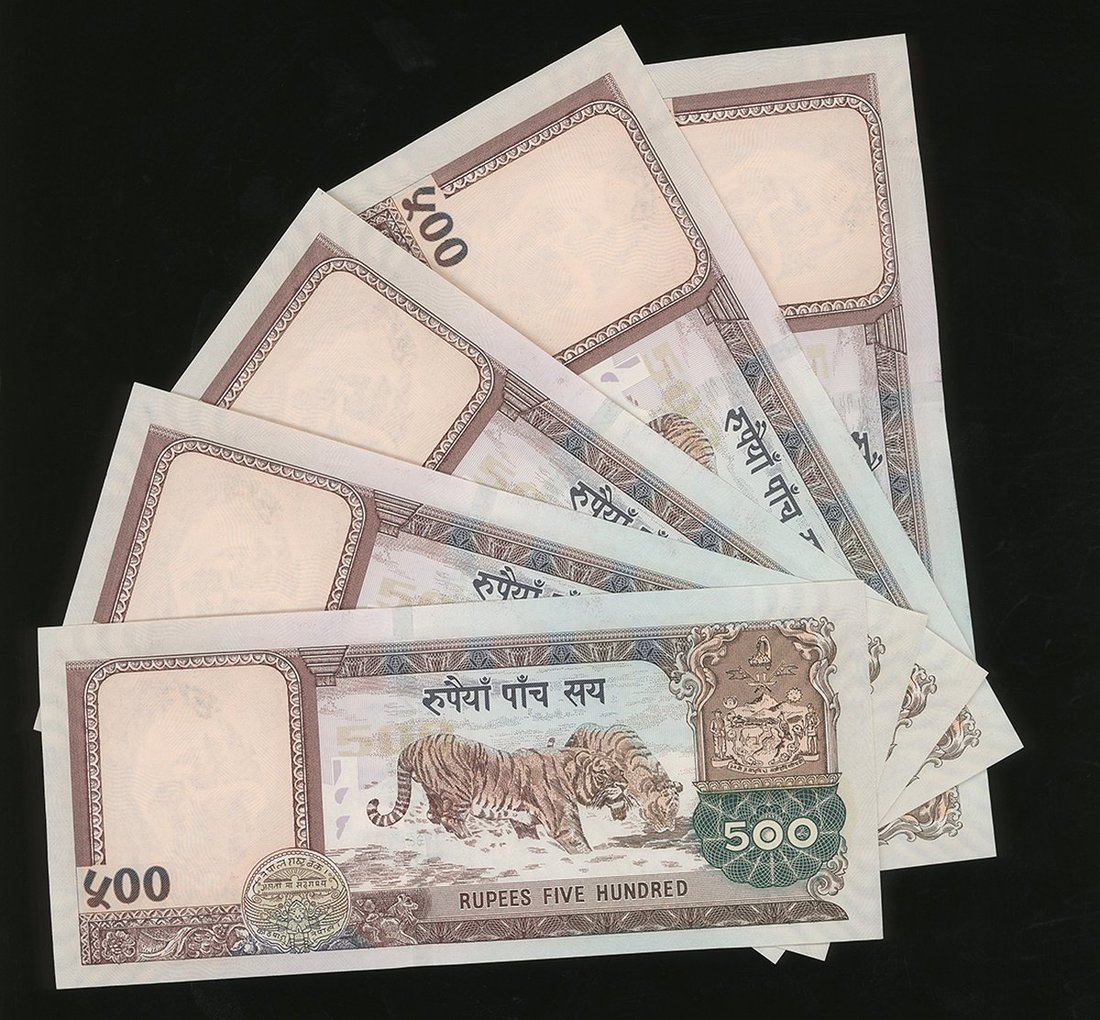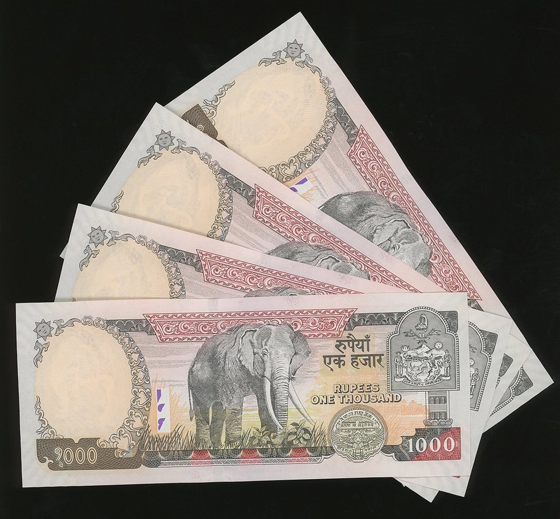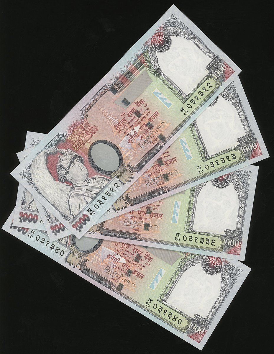 2003-05及2005-06年尼泊爾紙鈔一組40枚,不同簽名版別,5盧比10枚,20盧比10枚,50盧比4枚,100盧比5枚,500盧比5枚及1000盧比6枚,若干連號,UNC,有軟折