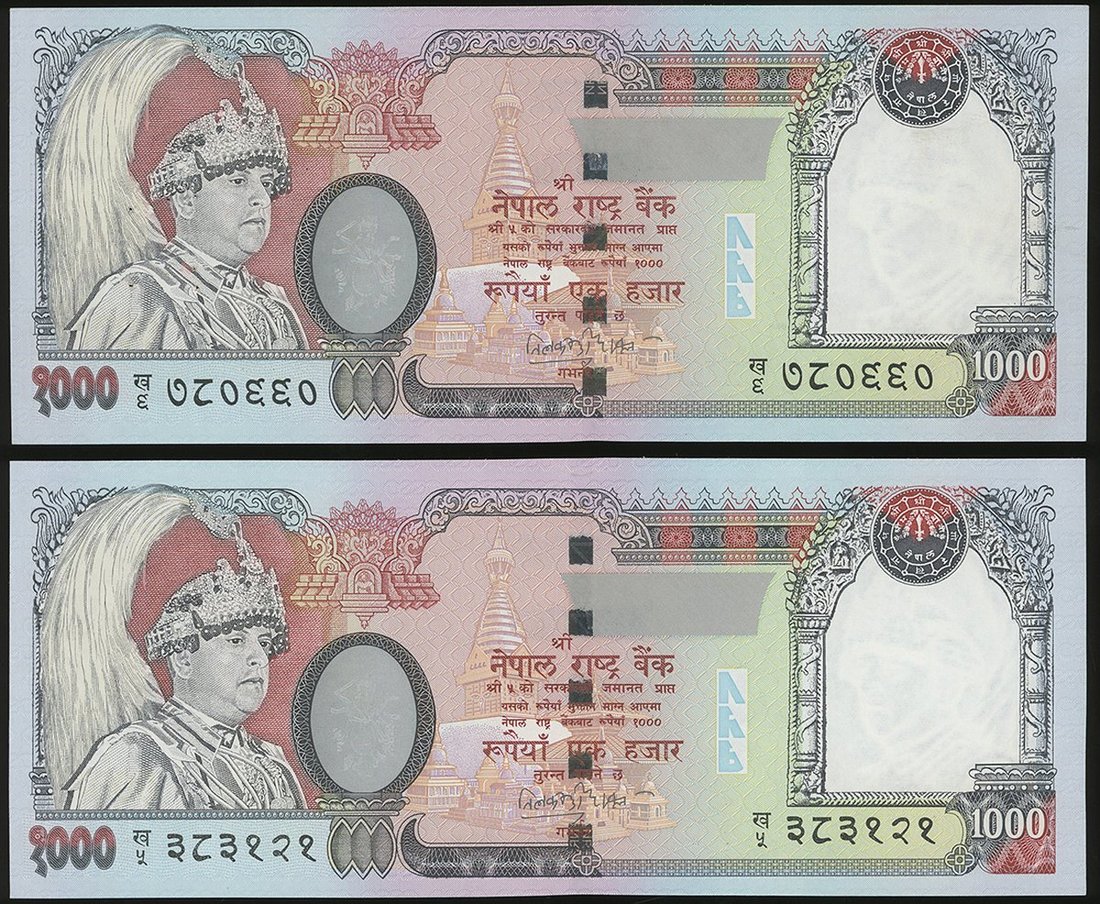 6x 1000 Rupees, signed by Dr. Rawal, two different stylistic variaties,