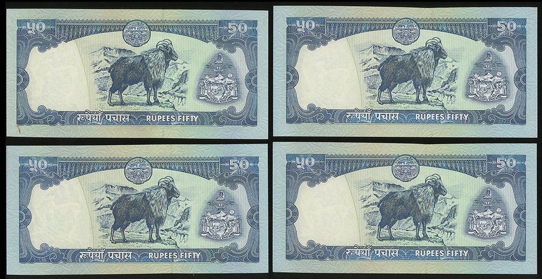 4x 50 Rupees, signed by Dr. Rawal, black and blue portrait varieties,