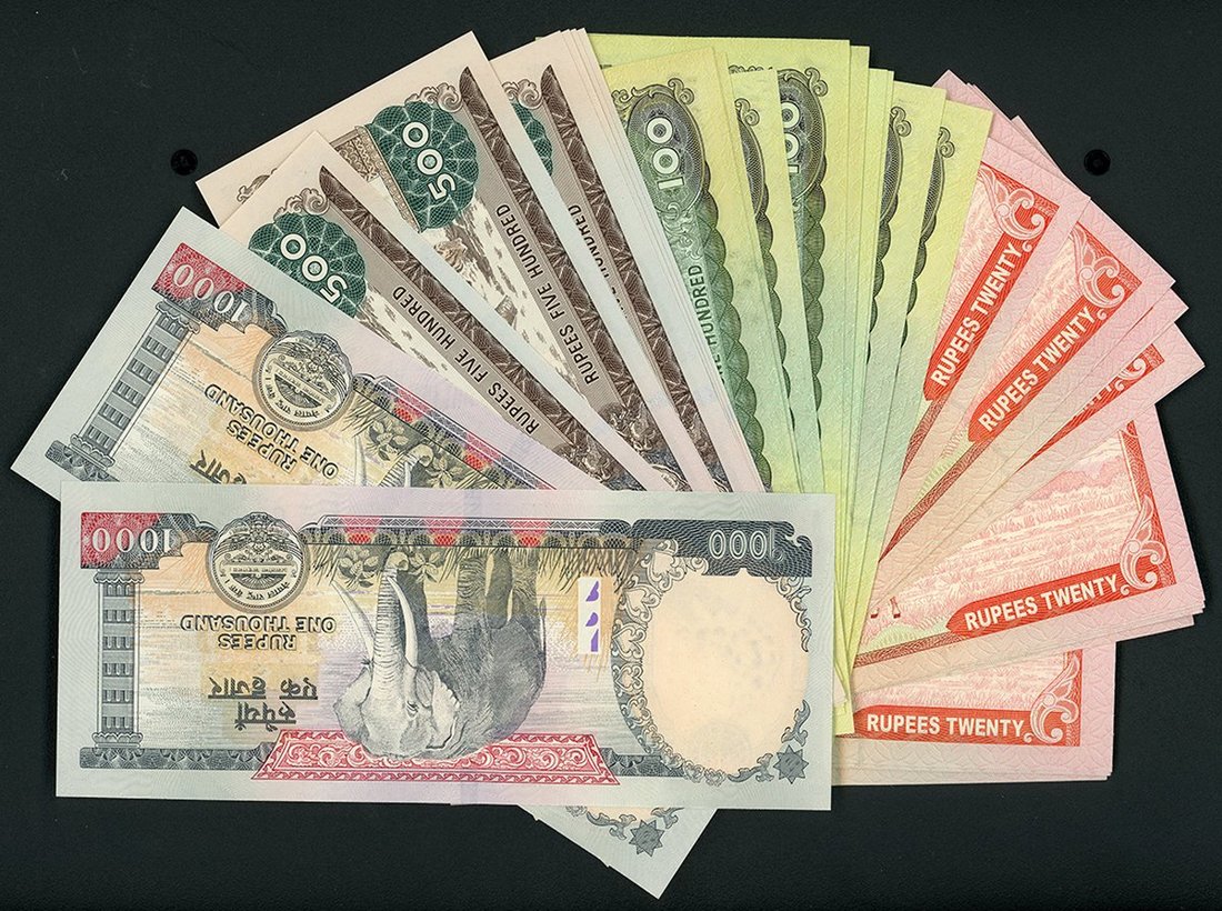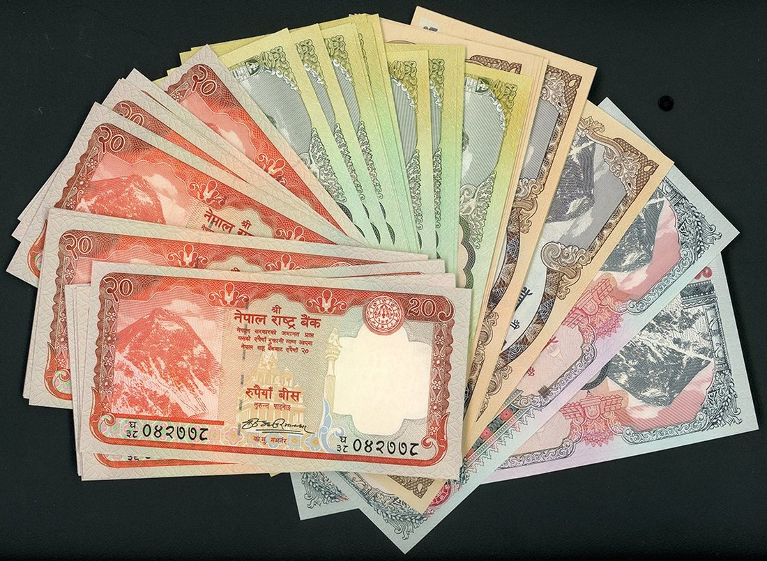 2008年尼泊爾一組46枚,無日期,包括20盧比25枚,100盧比12枚,500盧比7枚及1000盧比2枚,不同簽名版別,大部分AU至UNC