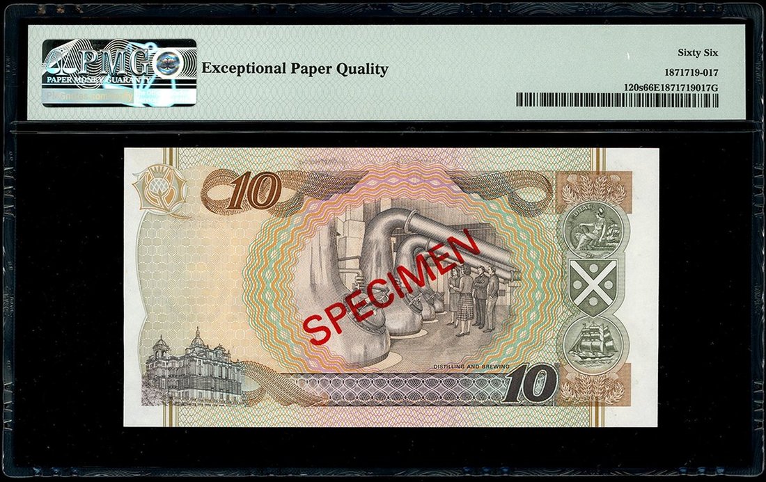 1995年蘇格蘭銀行10鎊樣票,編號AA000000,PMG 66EPQ