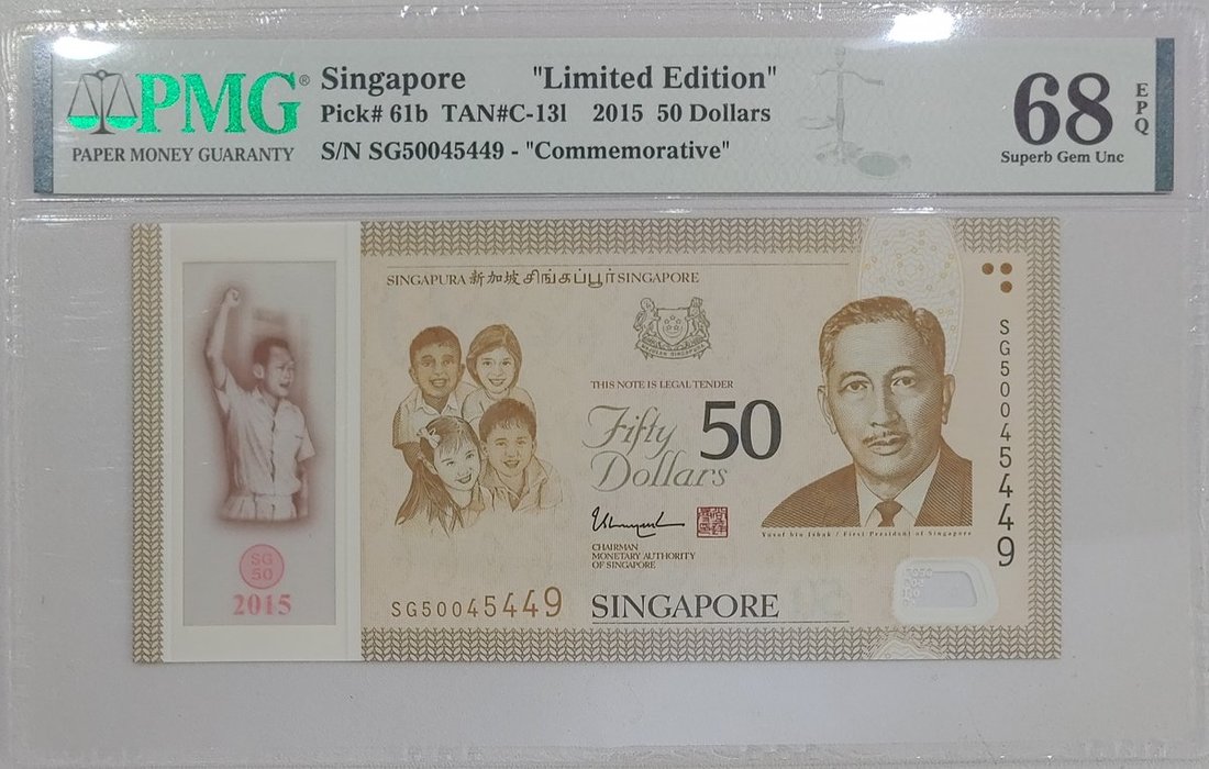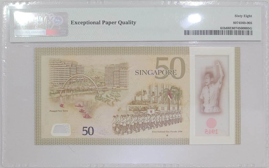 2015年新加坡50元李光耀紀念版,編號SG50045449,PMG 68EPQ