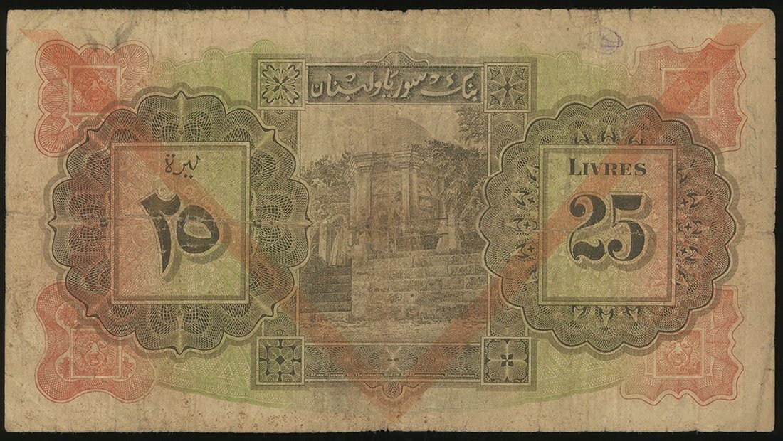 1939年敘利亞25里拉,編號M/N028883,紙邊有損,GVF