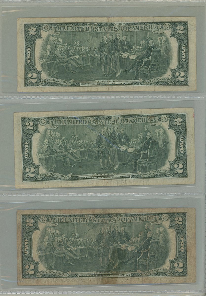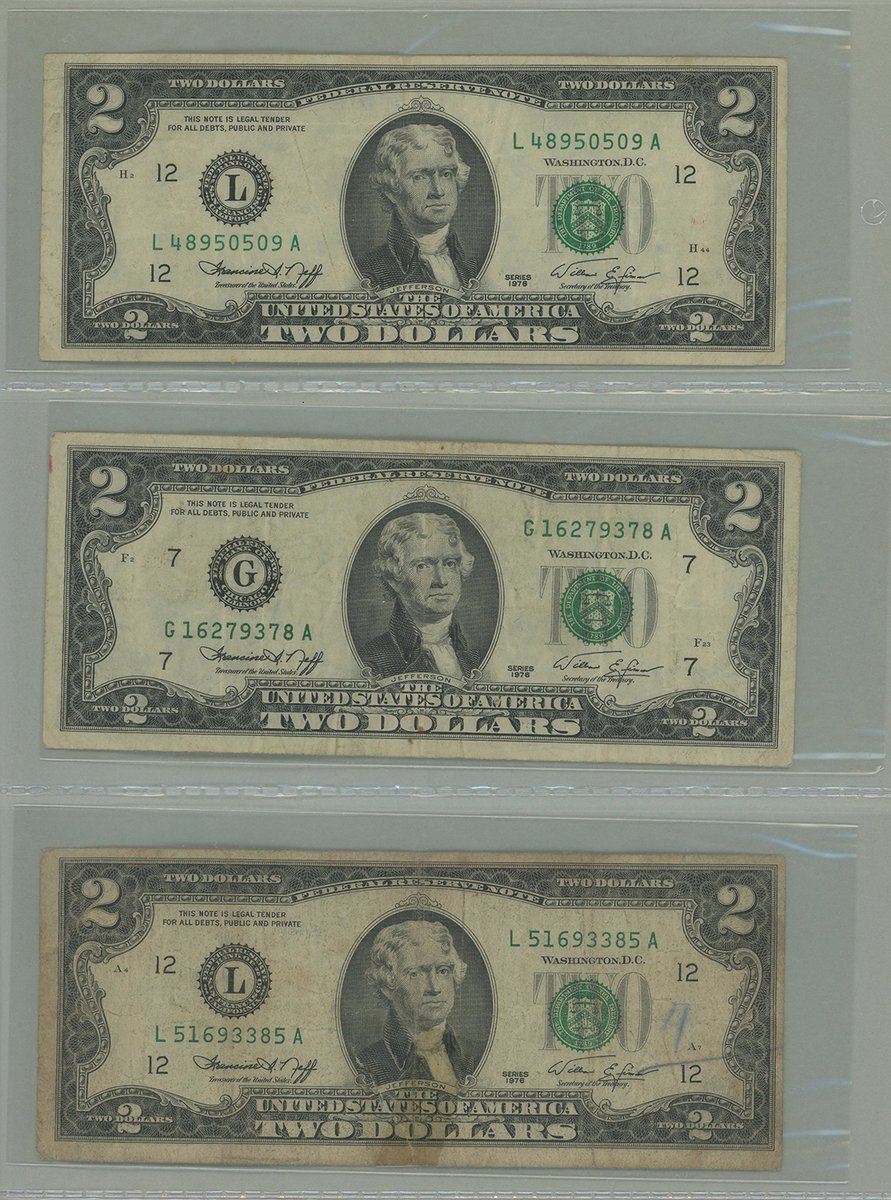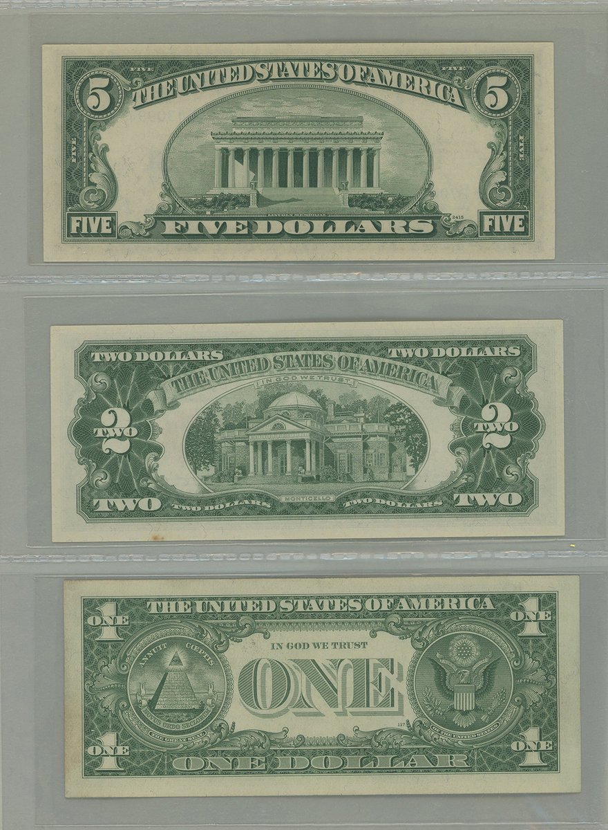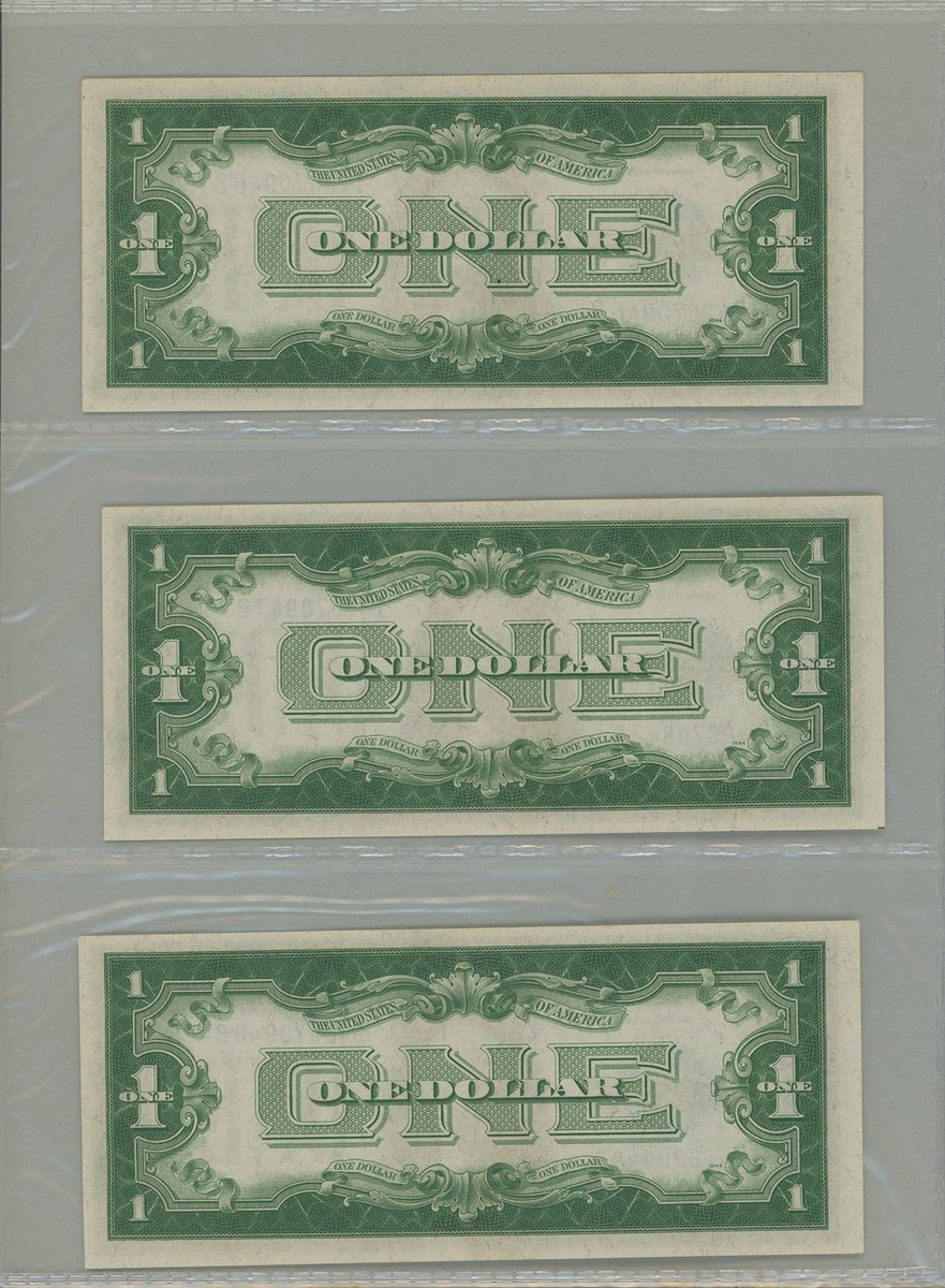 United States, group of 11 kept in an album, consisting of: Silver Certificate, including 6x $1, 1928B (5) and 1957 (1), and 1x $5, 1953A, consecutive serials I42670946B-950B; United States Note, $2, 1963; also Federal Reserve Note, $2, 1976,