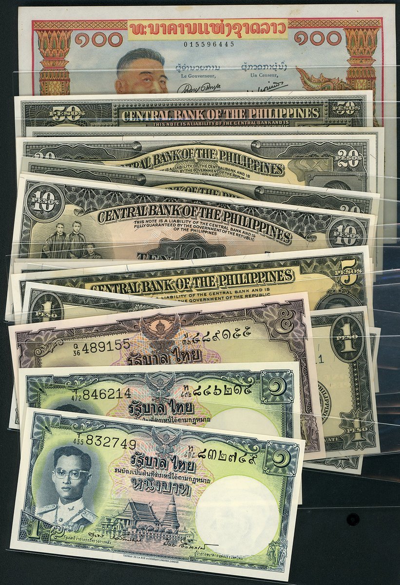 South East Asia, group of 15 notes, Thailand (3), Philippines (11) and Laos (1),